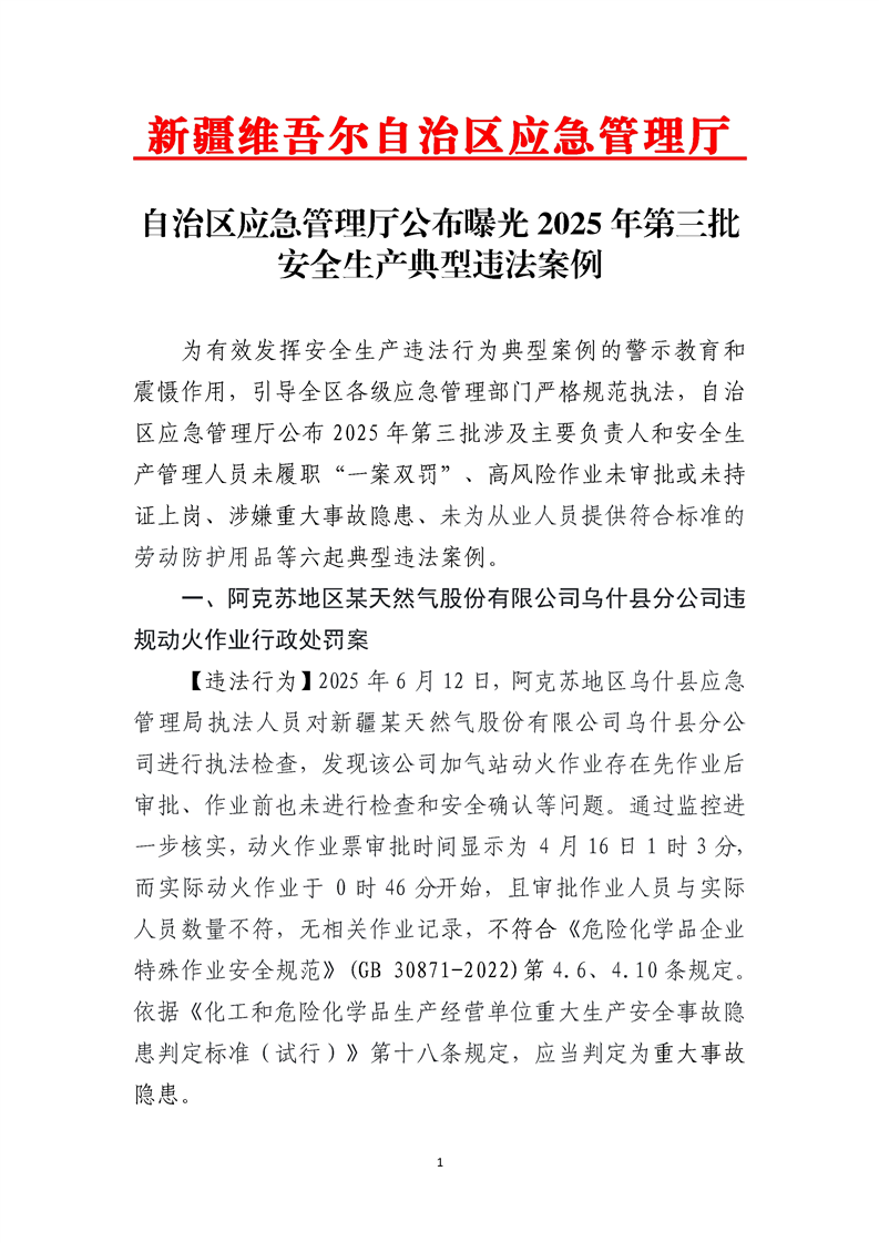 自治区应急管理厅公布曝光2025年第三批安全生产典型违法案例