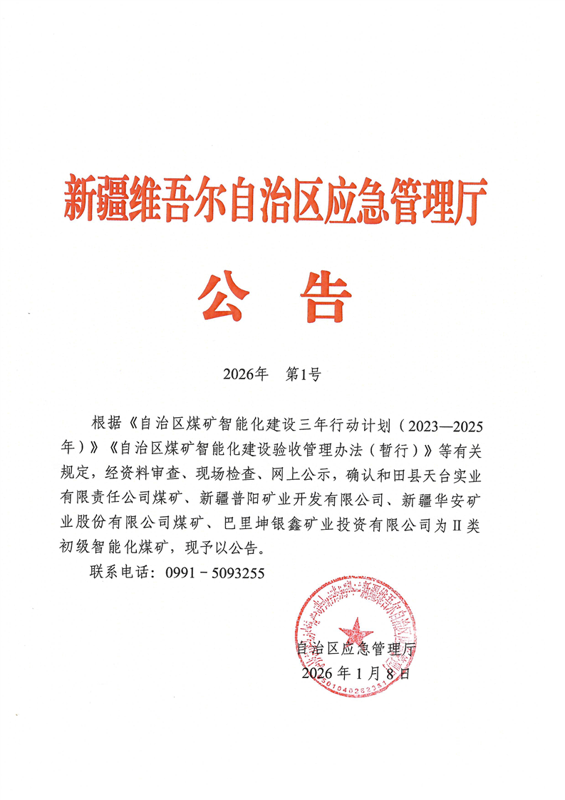 煤矿智能化建设达标情况公告