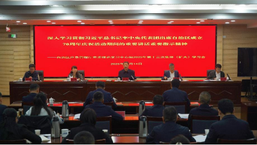 10月14日,自治区应急管理厅党委理论学习中心组举行2025年第十三次专题学习会,深入学习贯彻习近平总书记率中央代表团出席自治区成立70周年庆祝活动期间的重要讲话重要指示精神,学习贯彻习近平总书记关于边疆治理的重要论述,完整准确全面贯彻新时代党的治疆方略,聚焦新疆工作总目标,以铸牢中华民族共同体意识为主线,全力维护人民群众生命财产安全和社会大局稳定,以应急管理实际成效为自治区经济社会高质量发展提供坚实安全保障。自治区应急管理厅党委书记俱伟主持会议并讲话。