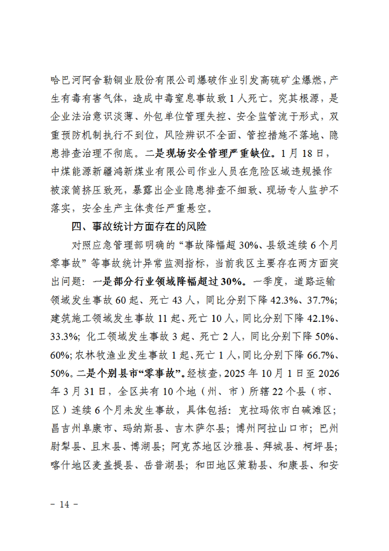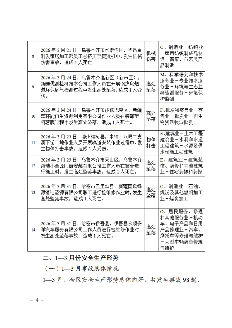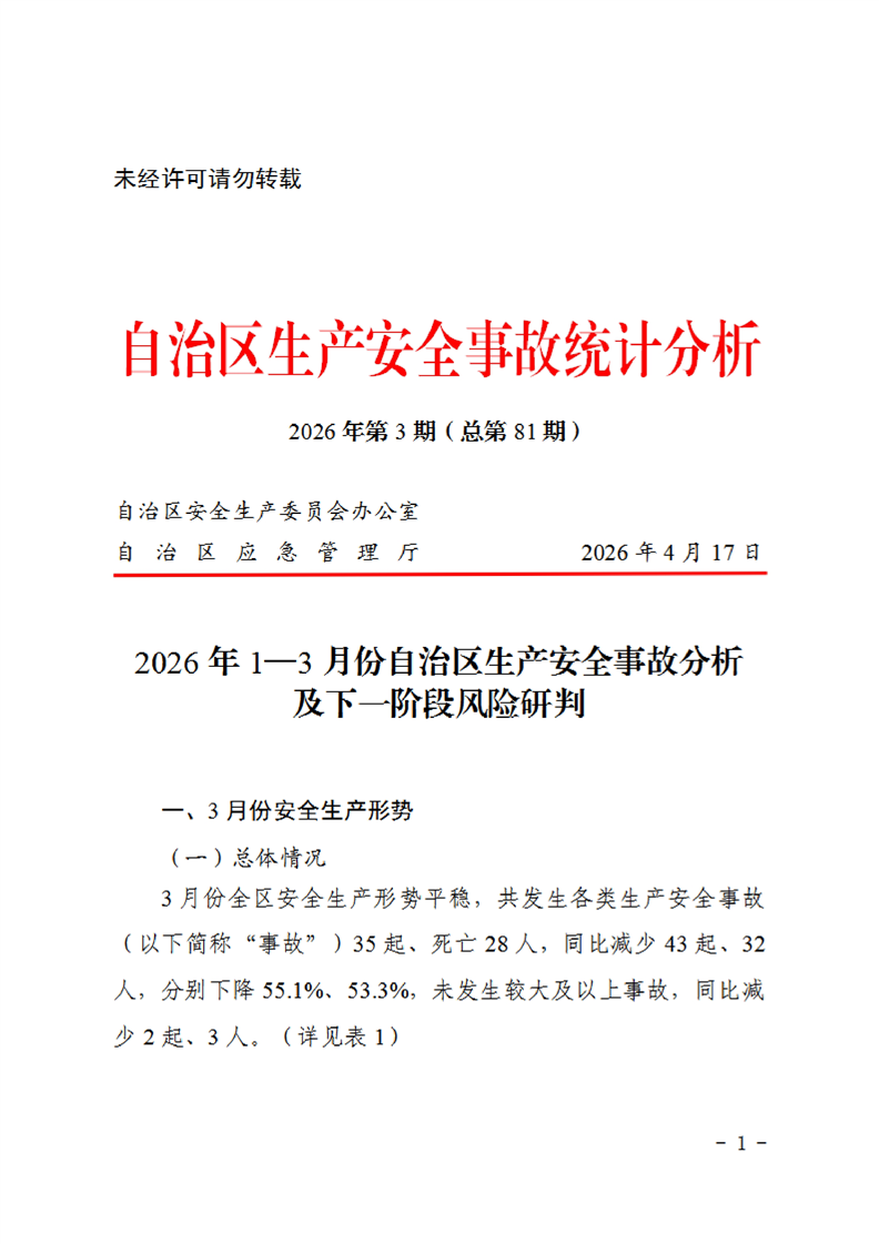 2026年1—3月份自治区生产安全事故分析及下一阶段风险研判