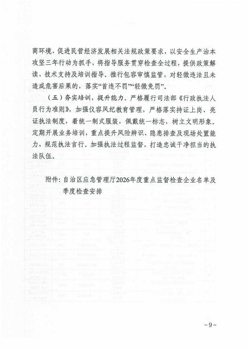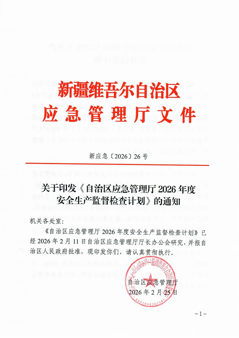 关于印发《自治区应急管理厅2026年度安全生产监督检查计划》的通知