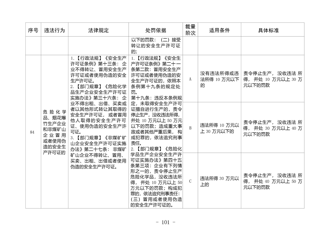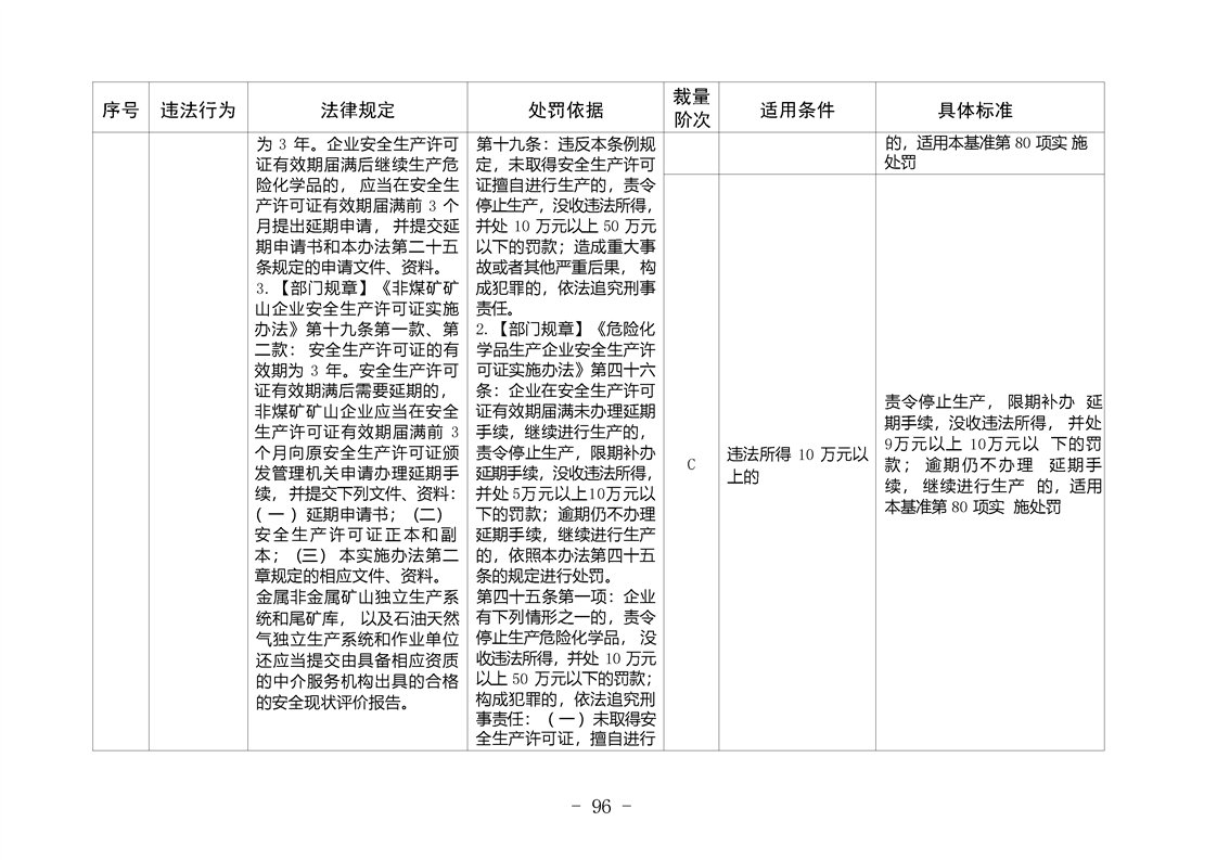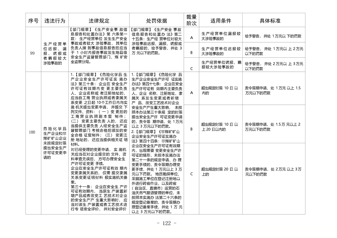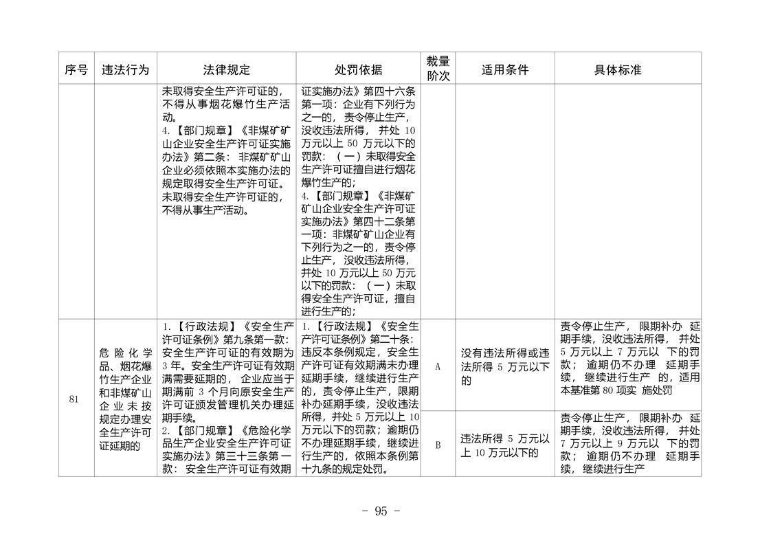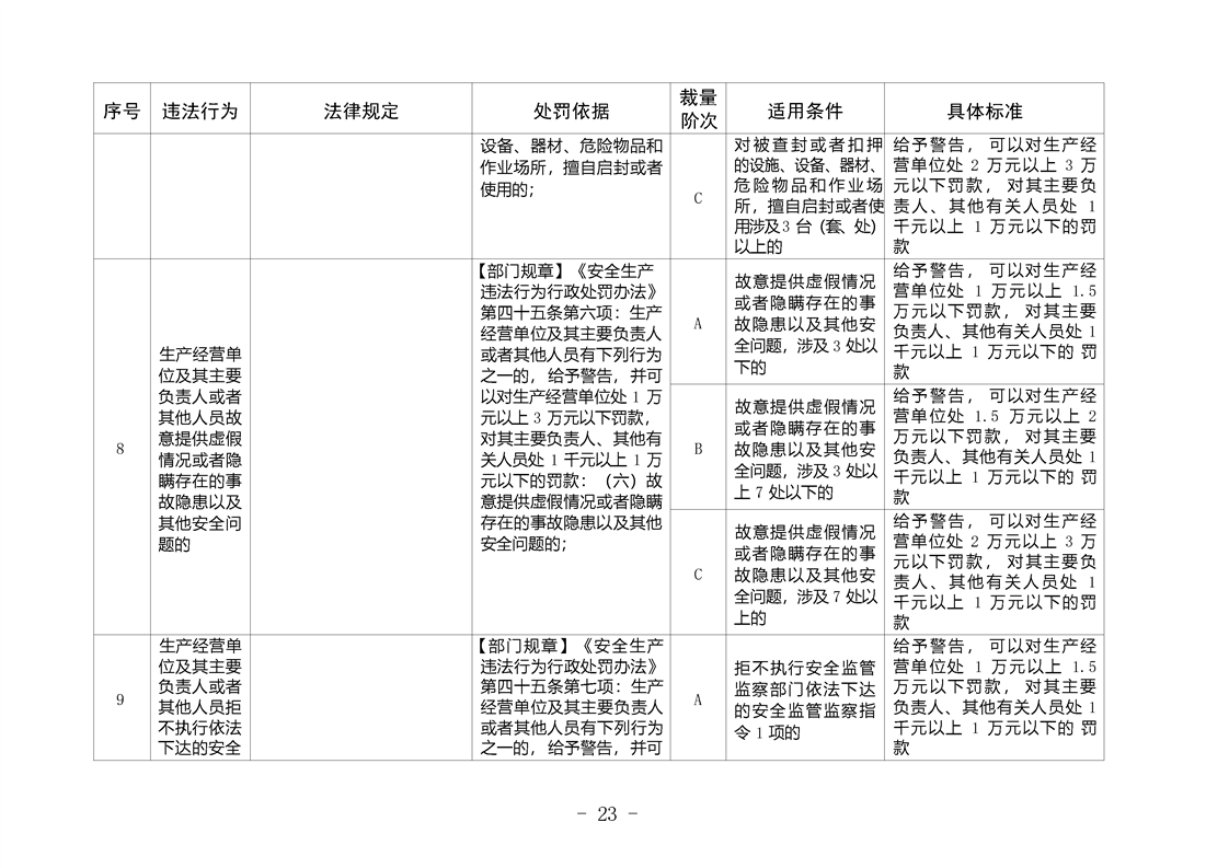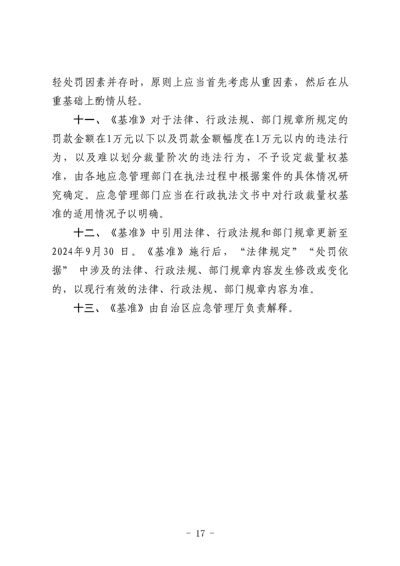 新疆维吾尔自治区应急管理行政处罚裁量权基准