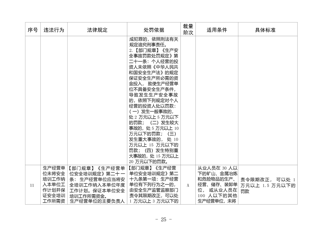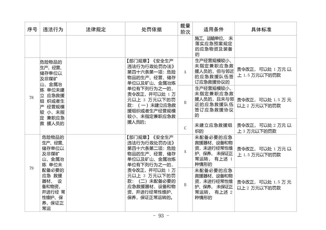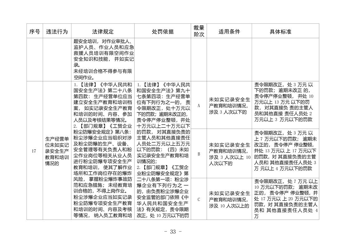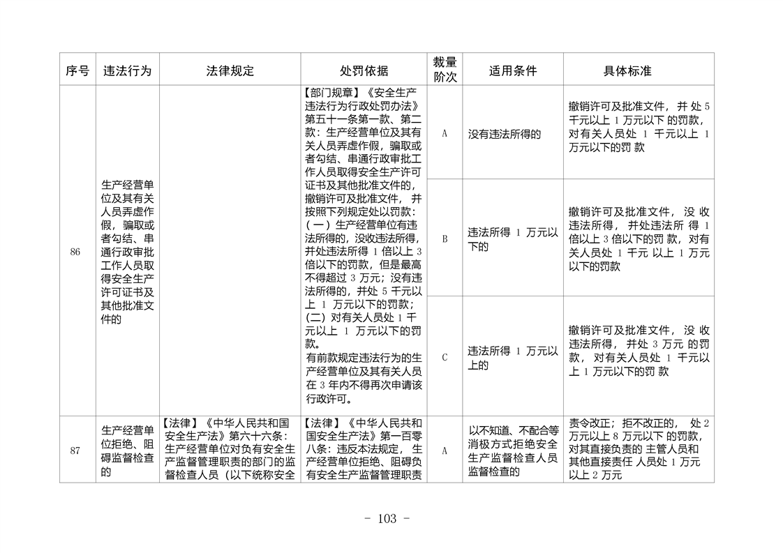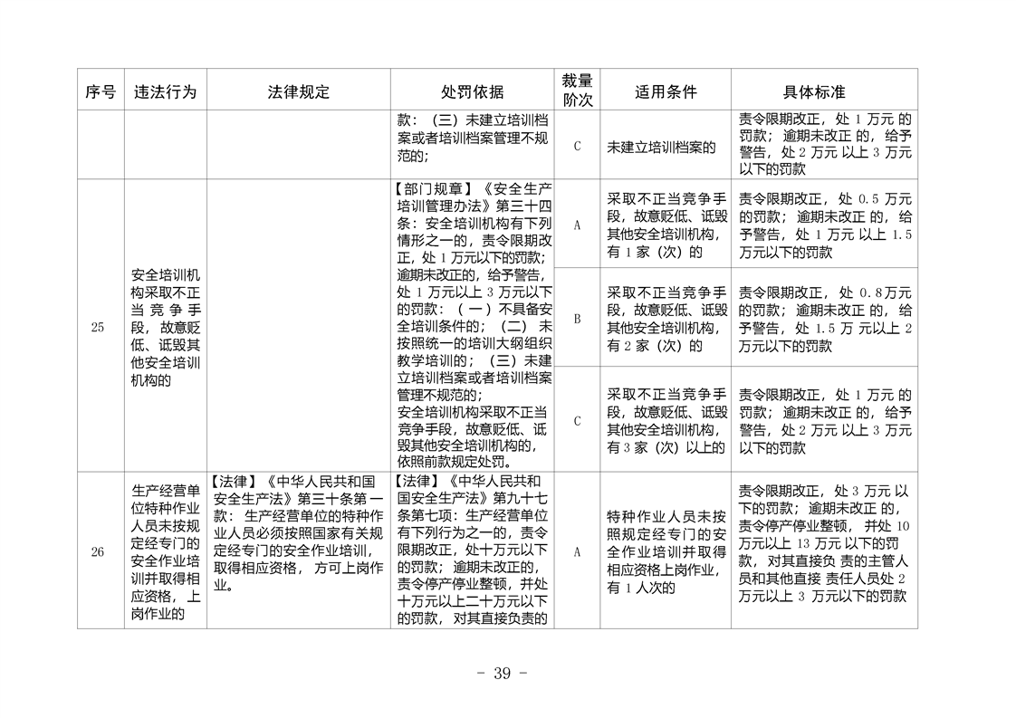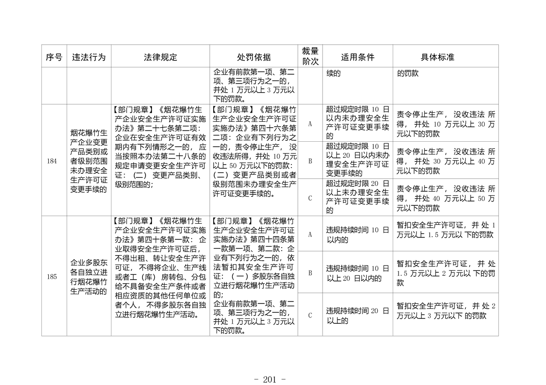 新疆维吾尔自治区应急管理行政处罚裁量权基准
