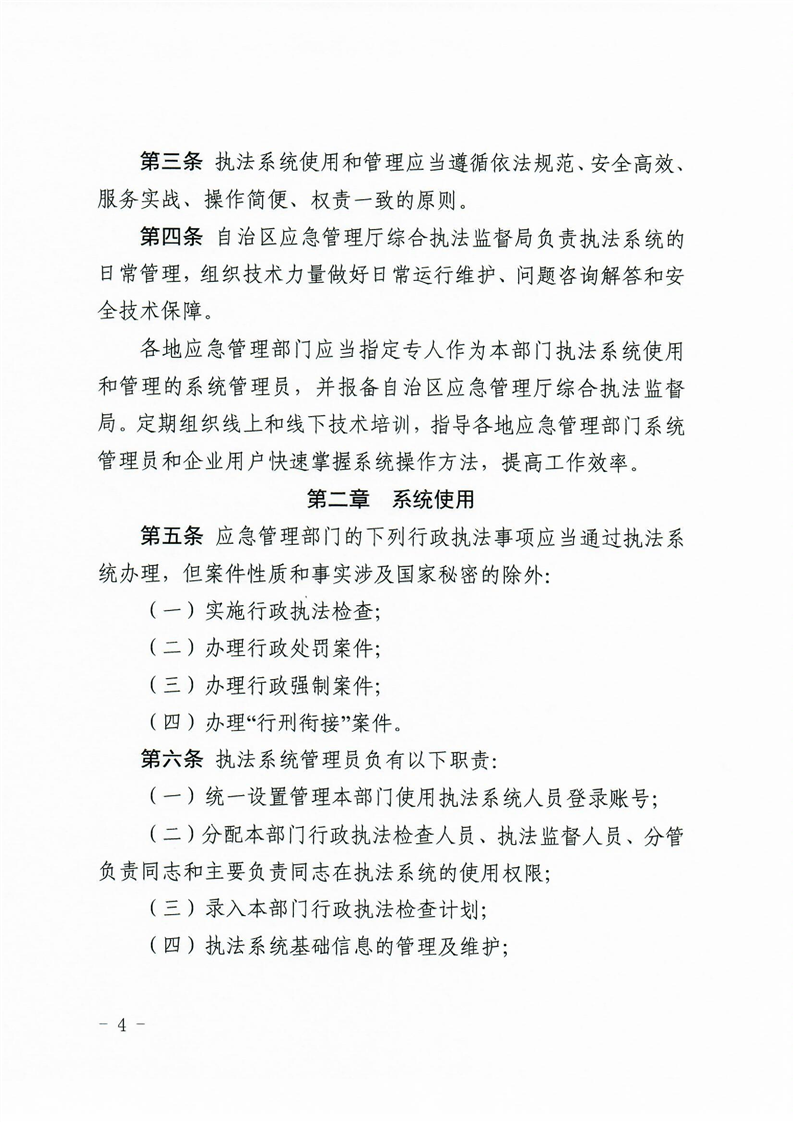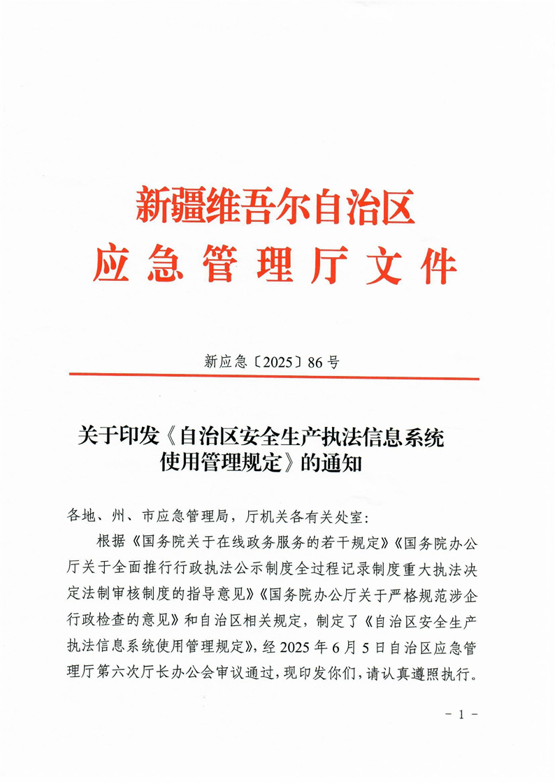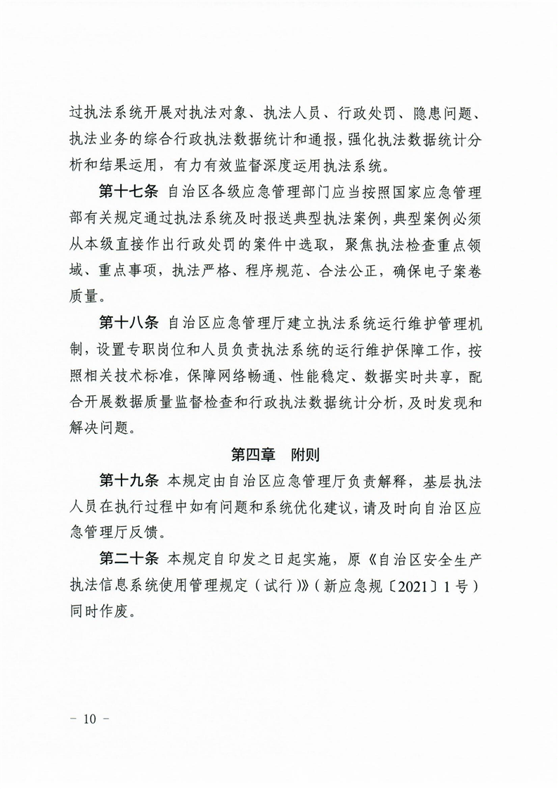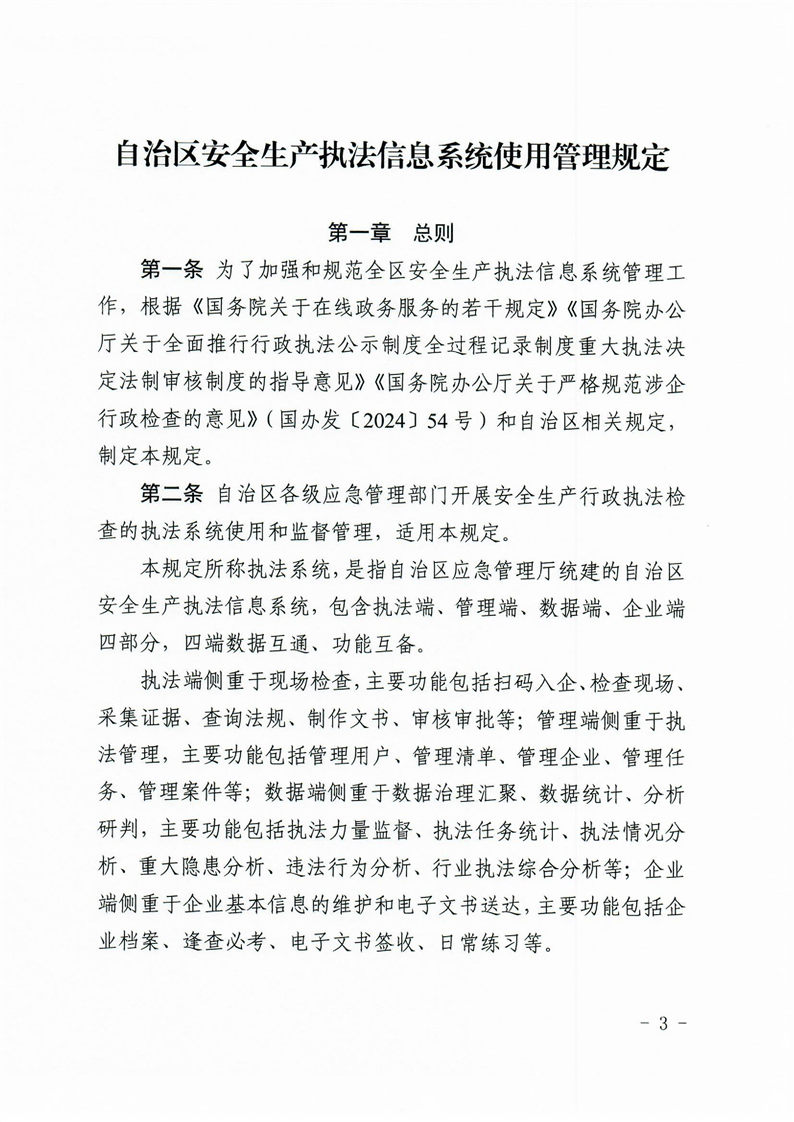 关于印发《自治区安全生产执法信息系统使用管理规定》的通知