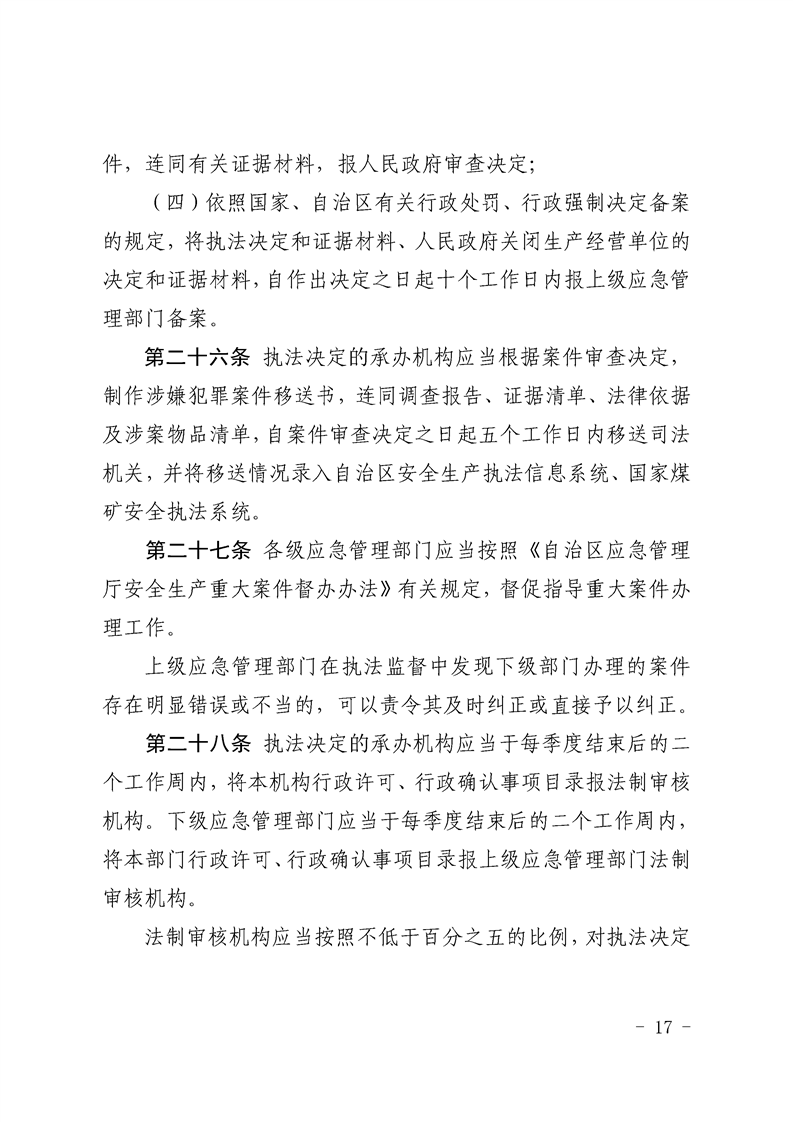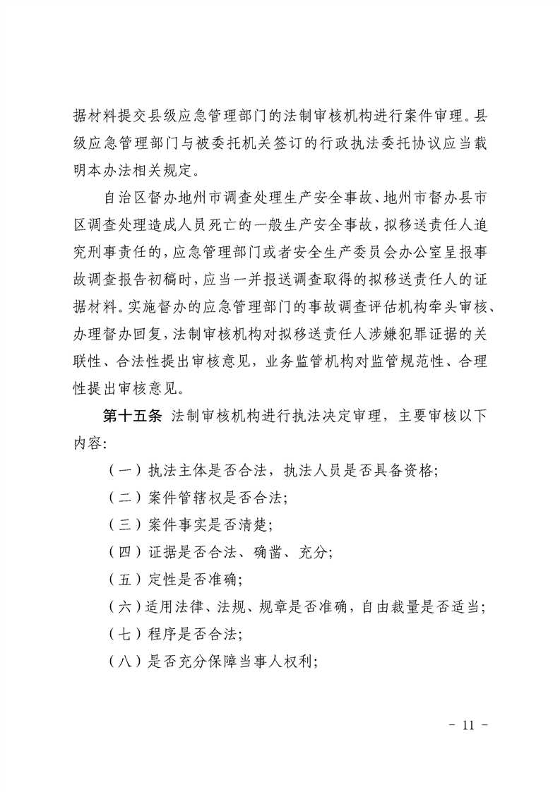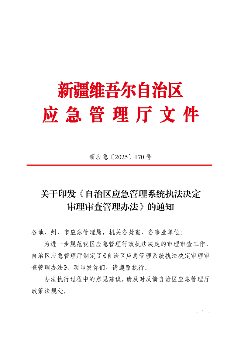 关于印发《自治区应急管理系统执法决定审理审查管理办法》的通知