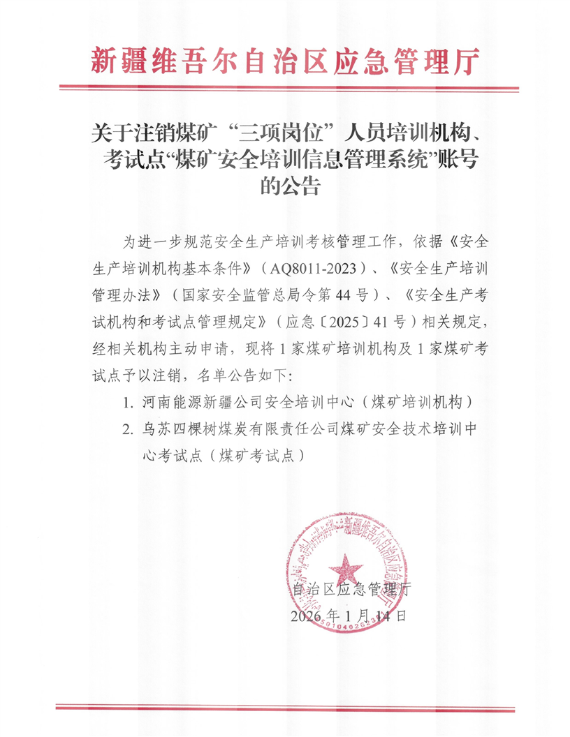 关于注销煤矿“三项岗位”人员培训机构、考试点“煤矿安全培训信息管理系统”账号的公告