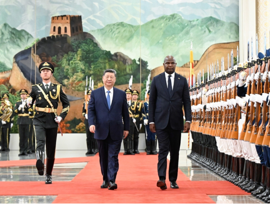 4月21日下午,国家主席习近平在北京人民大会堂同来华进行国事访问的莫桑比克总统查波举行会谈。这是会谈前,习近平在人民大会堂北大厅为查波举行欢迎仪式。新华社记者 丁海涛 摄