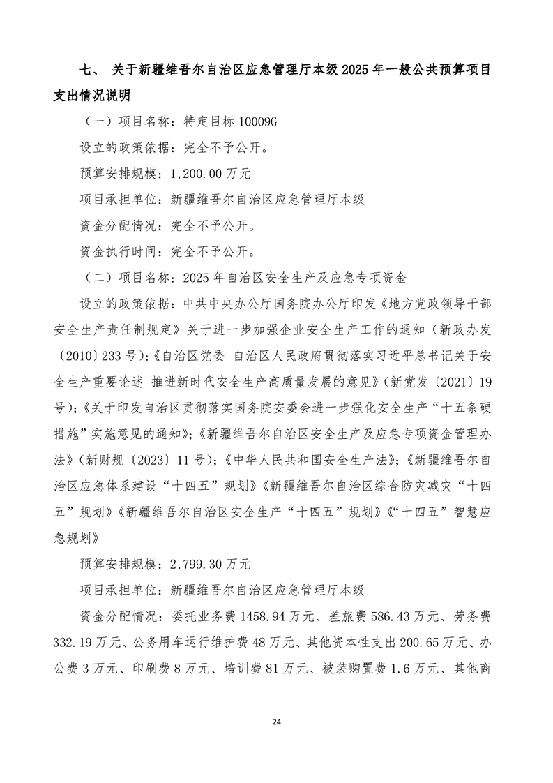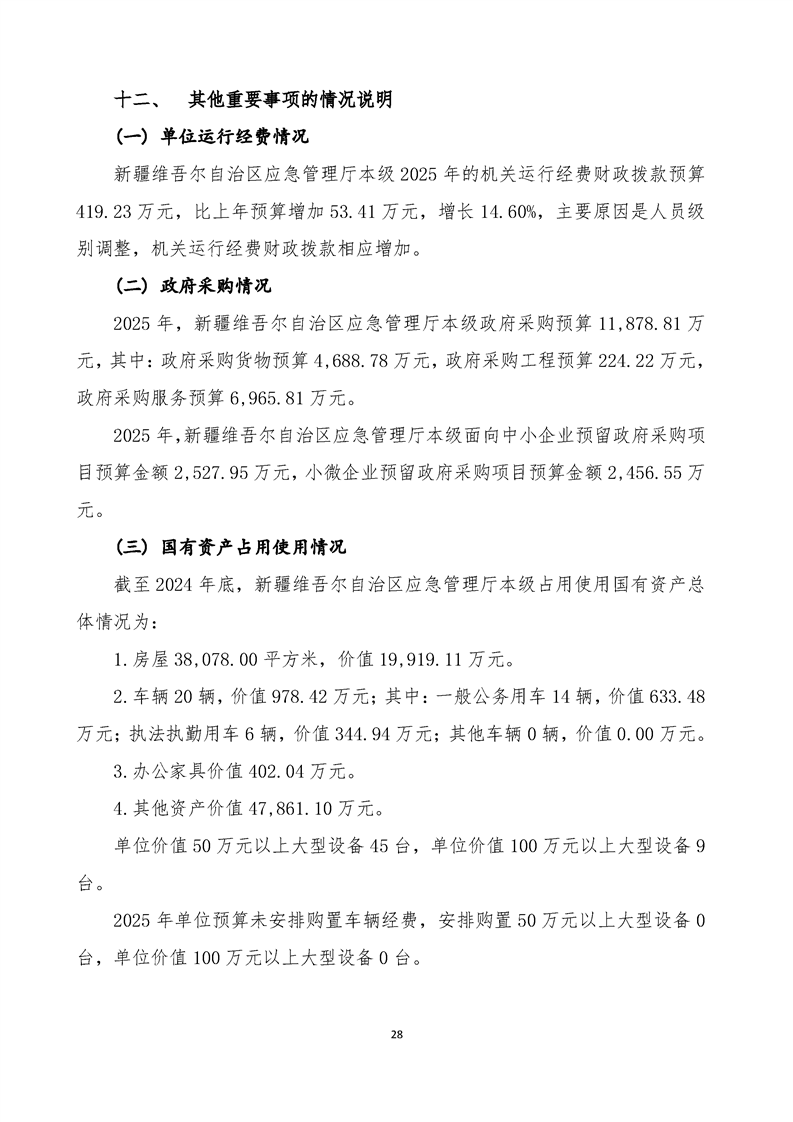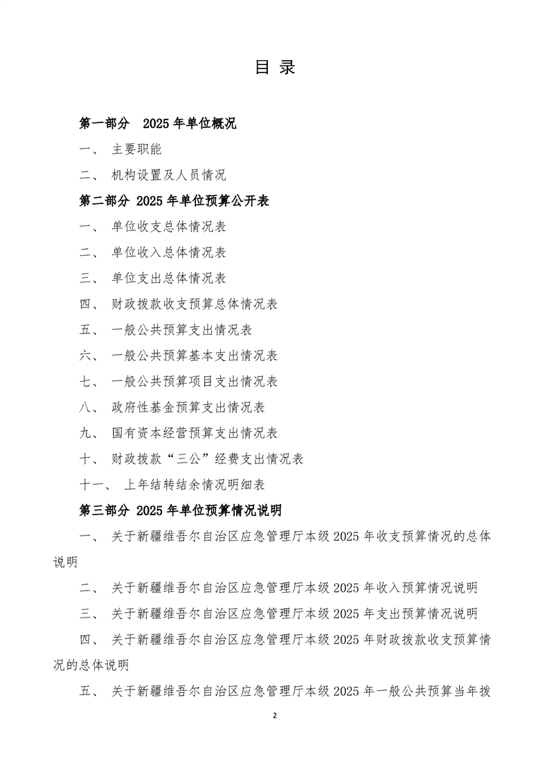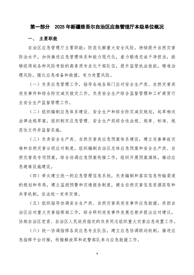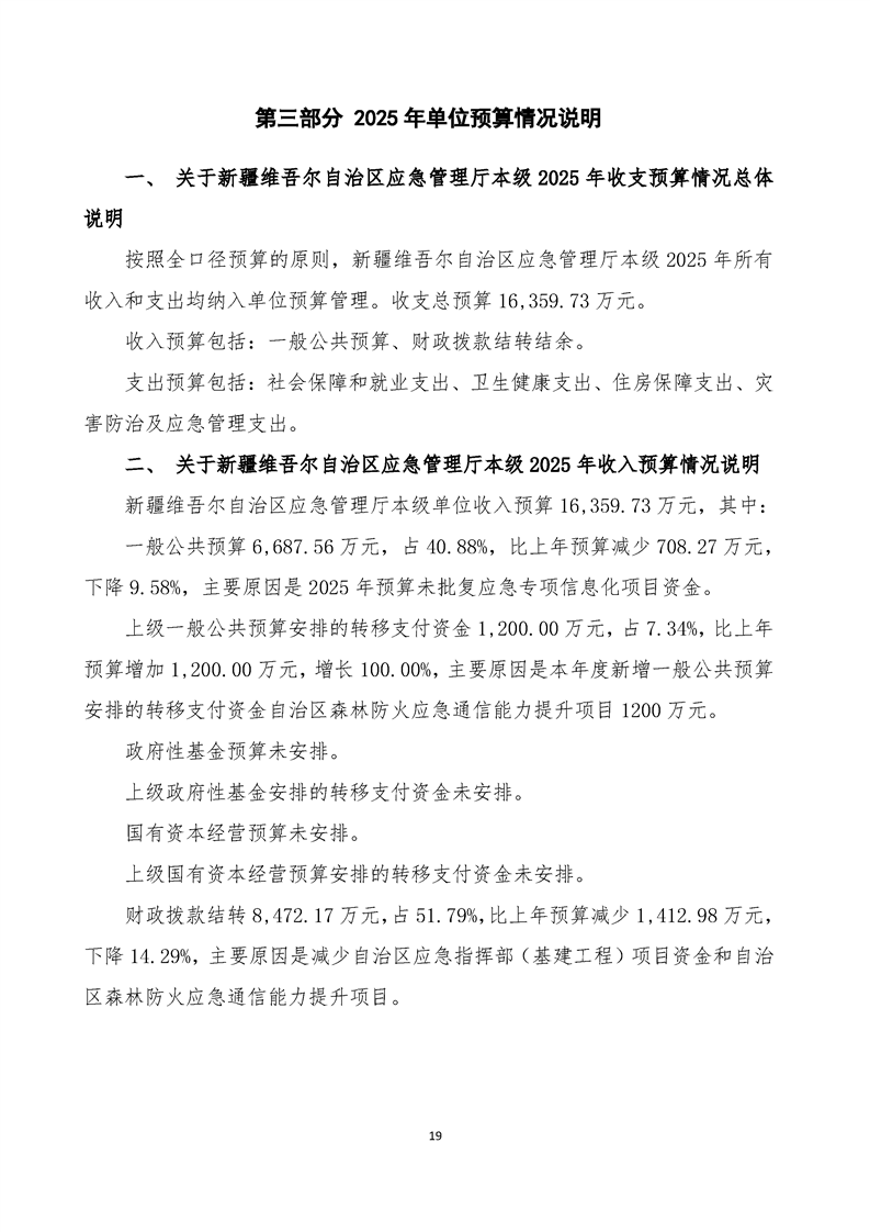 新疆维吾尔自治区应急管理厅本级2025年单位预算公开报告