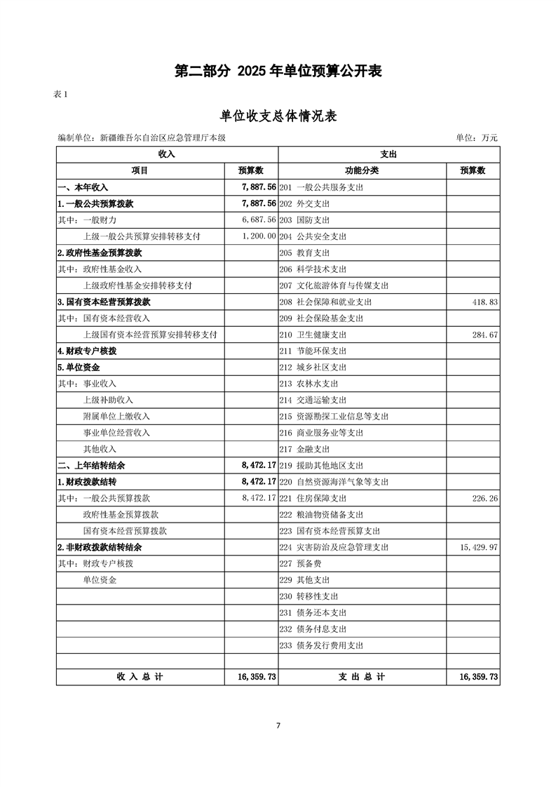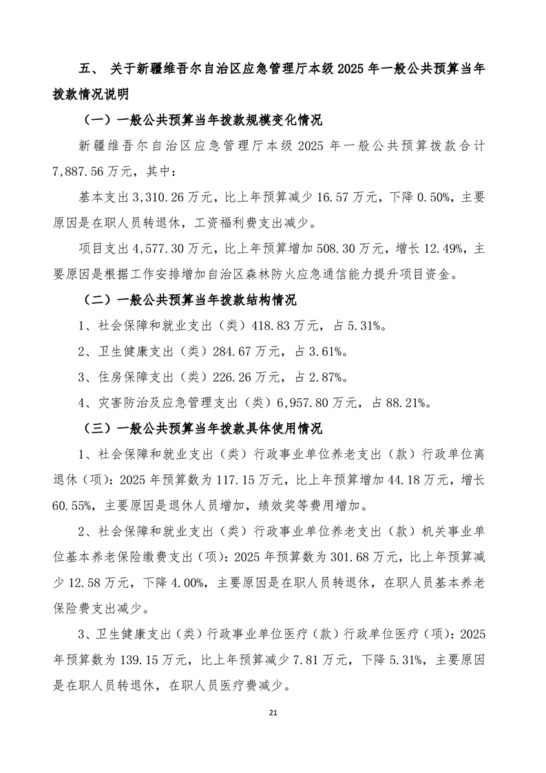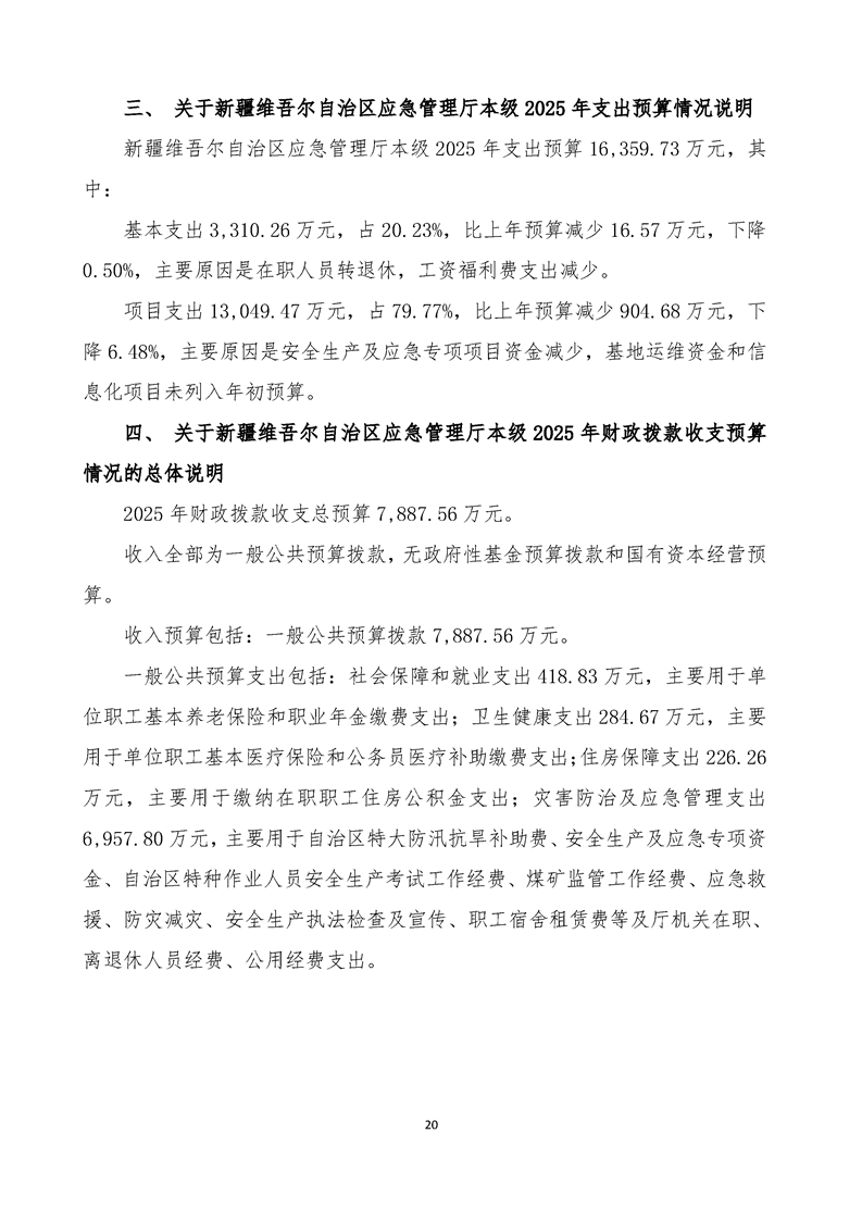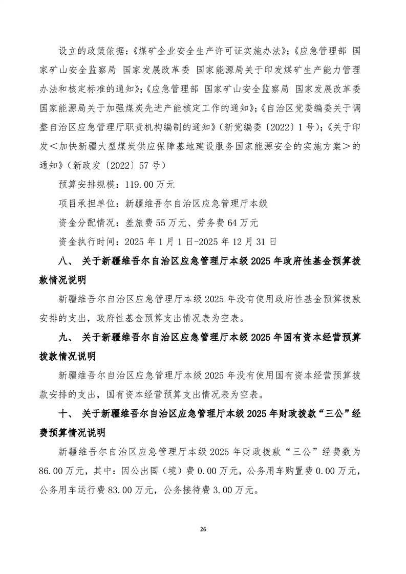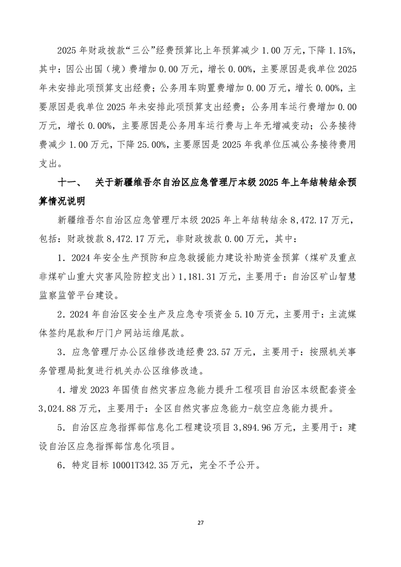 新疆维吾尔自治区应急管理厅本级2025年单位预算公开报告