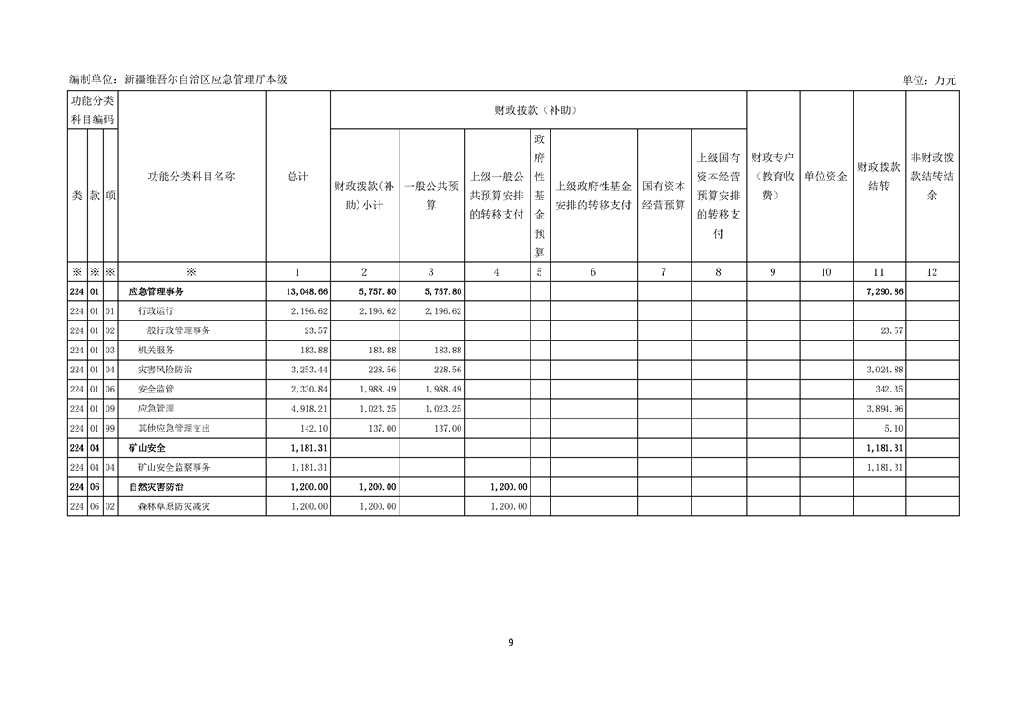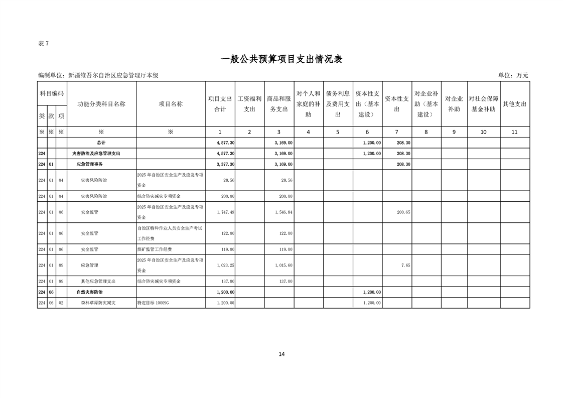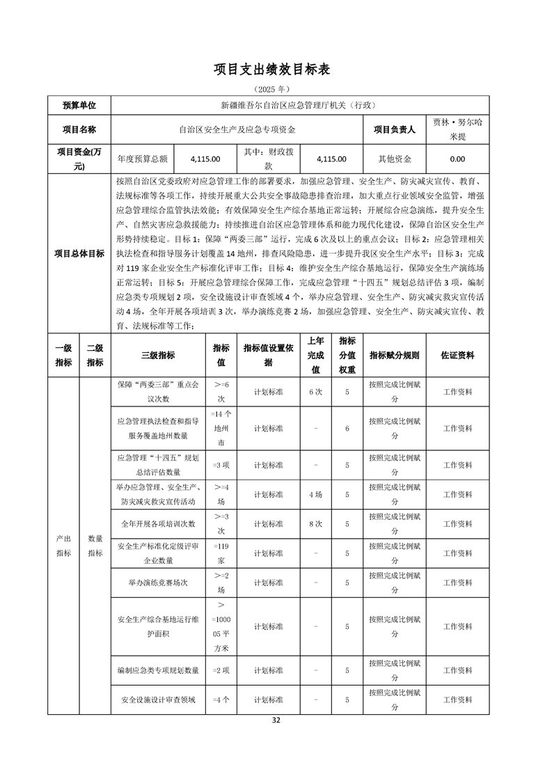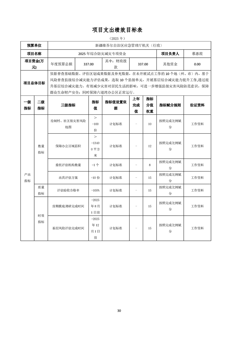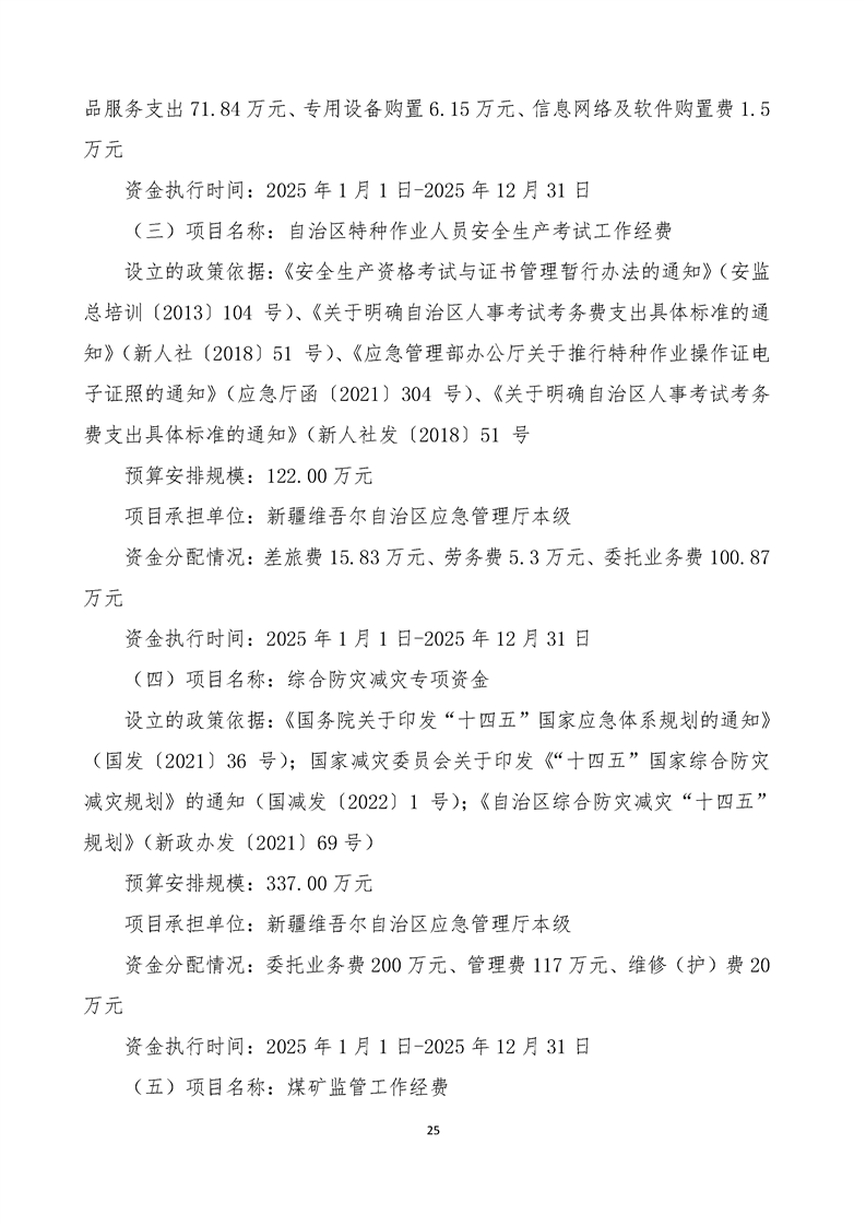新疆维吾尔自治区应急管理厅本级2025年单位预算公开报告