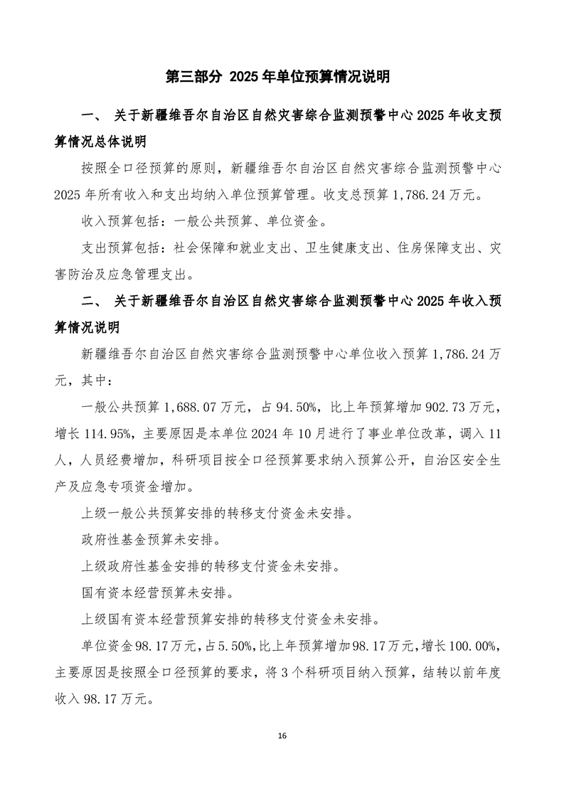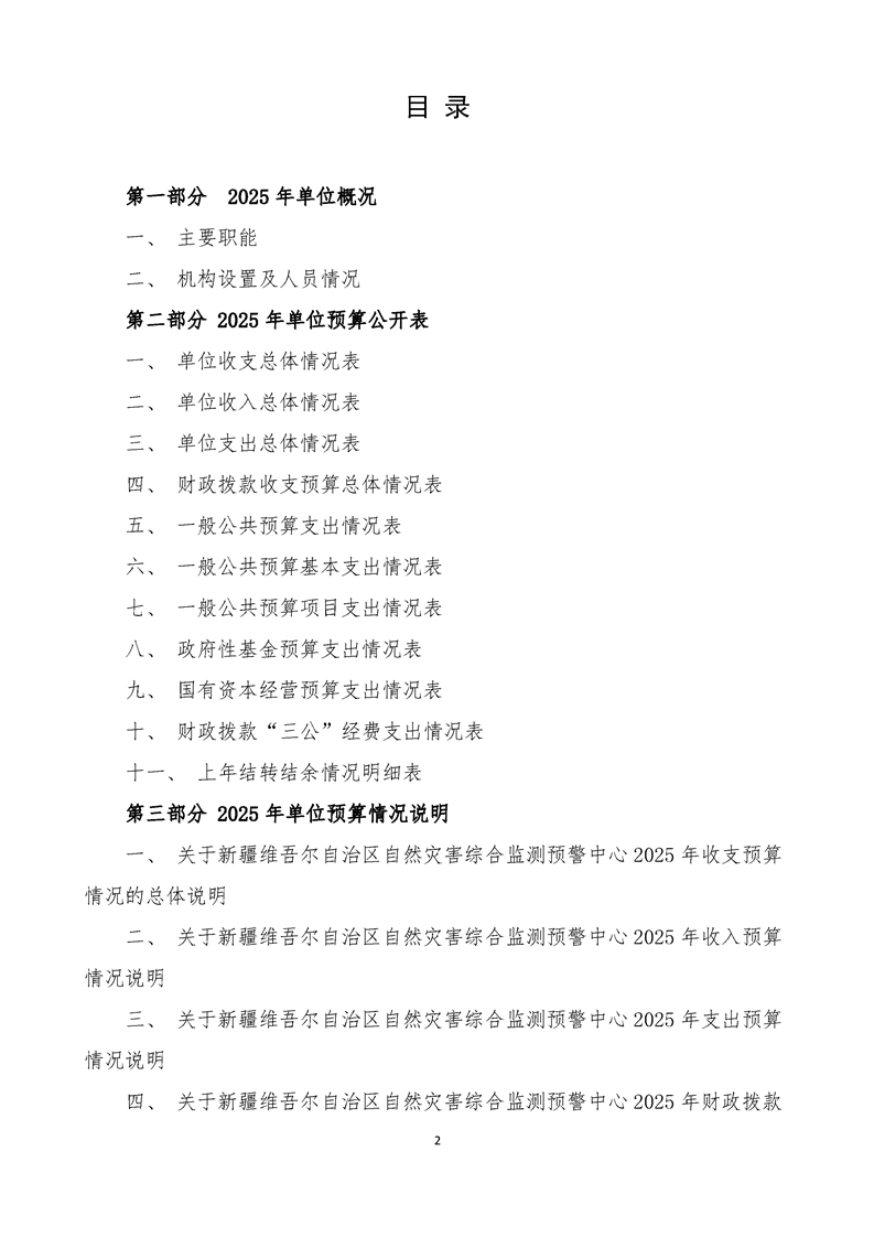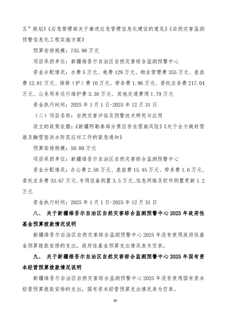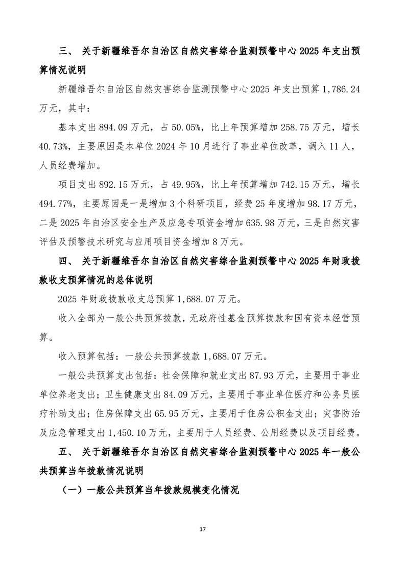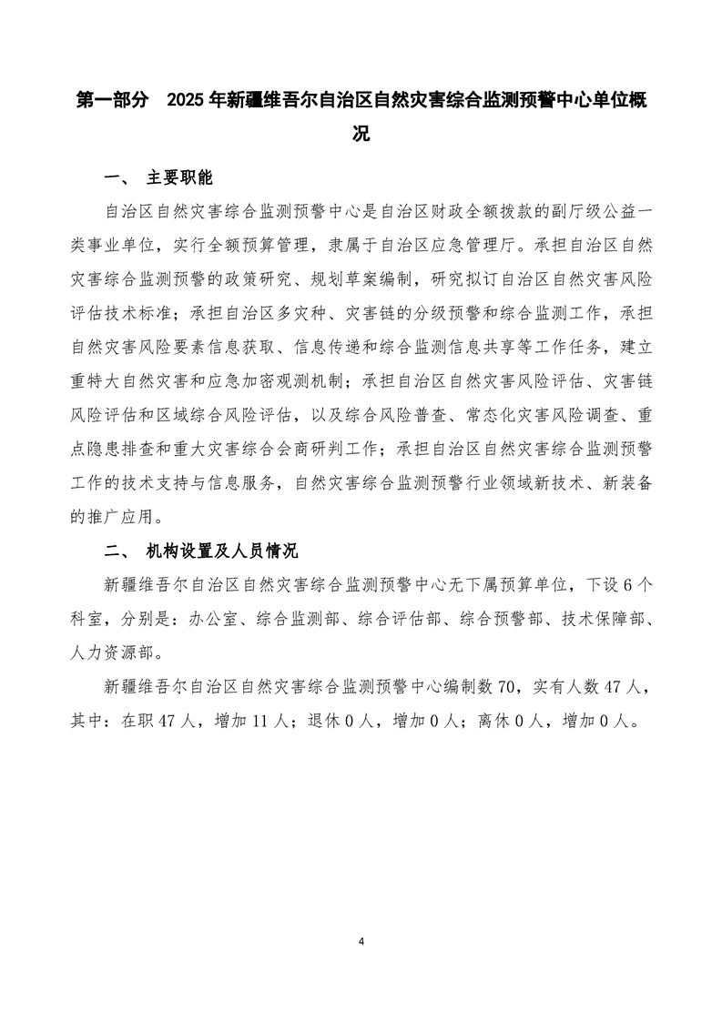 新疆维吾尔自治区自然灾害综合监测预警中心2025年单位预算公开报告