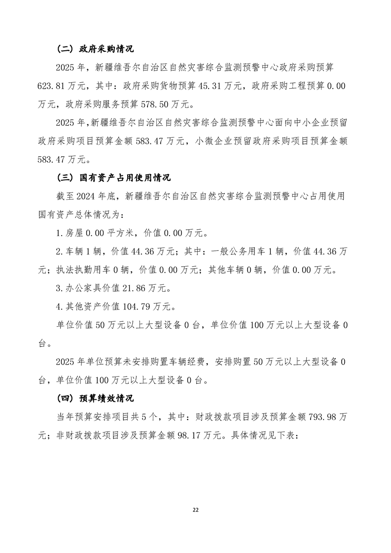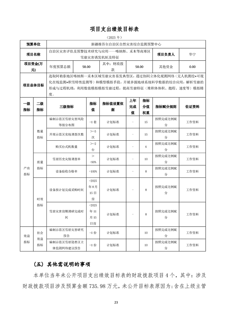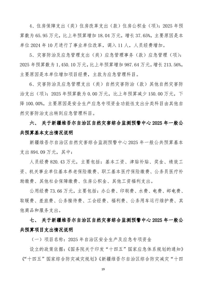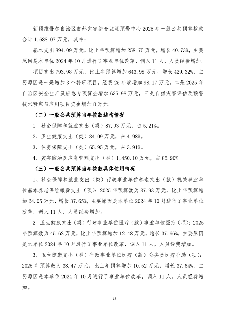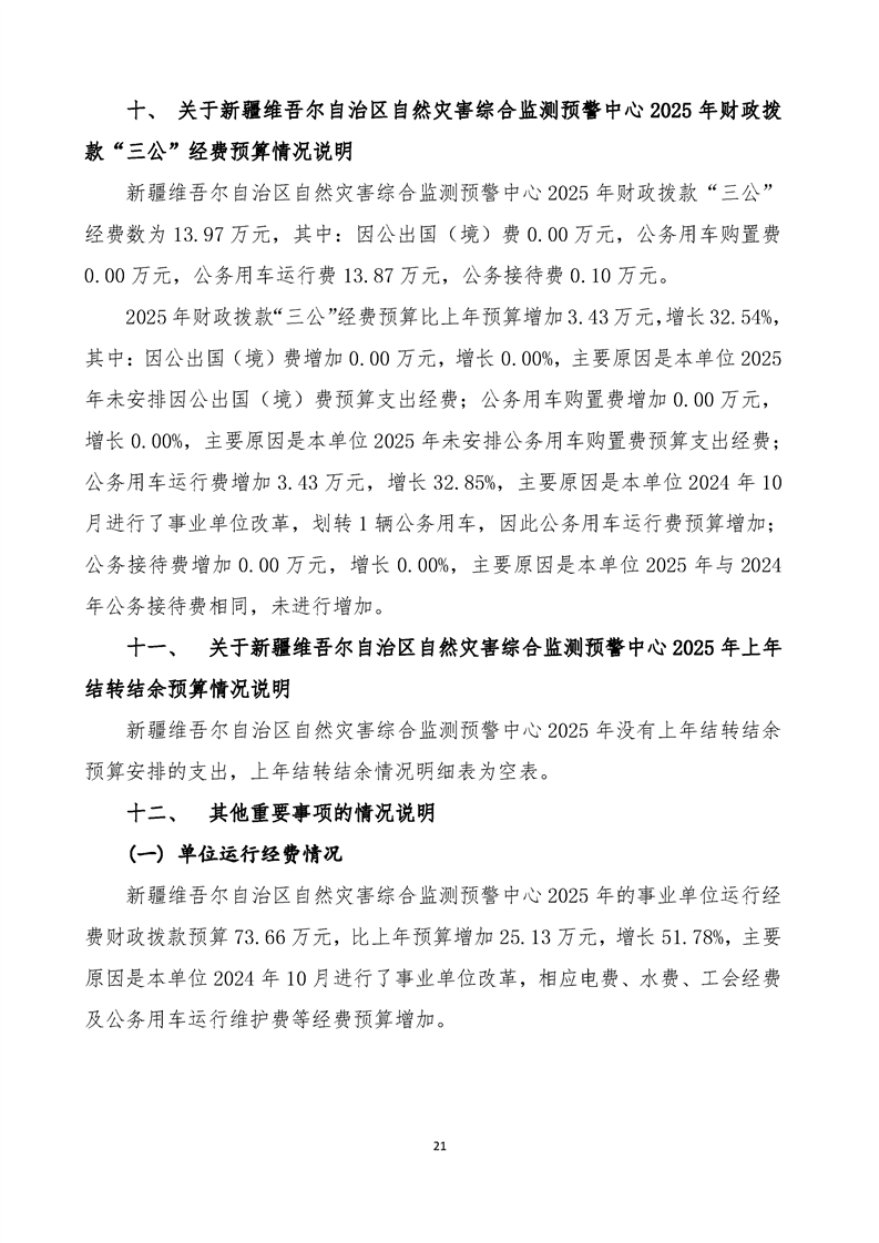 新疆维吾尔自治区自然灾害综合监测预警中心2025年单位预算公开报告