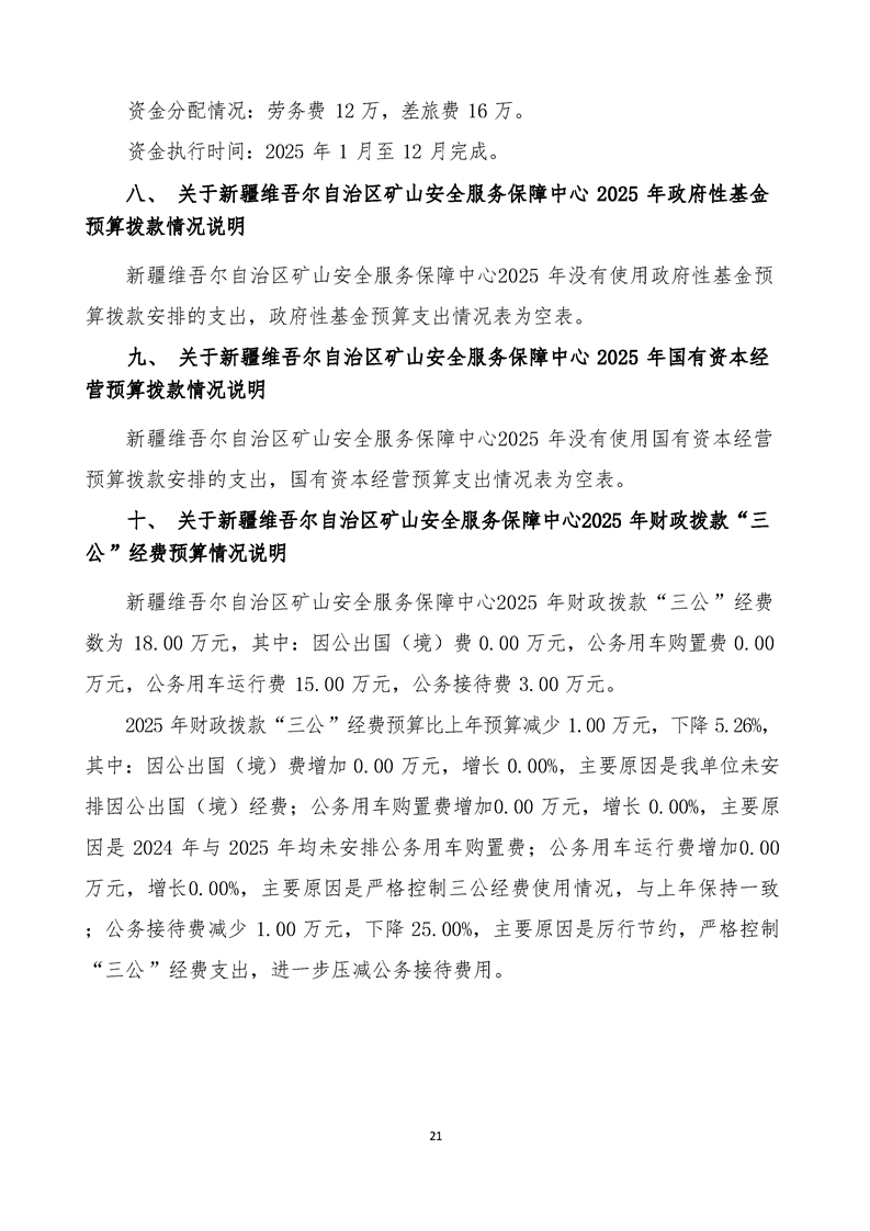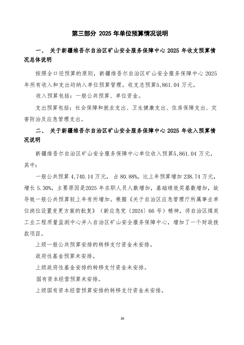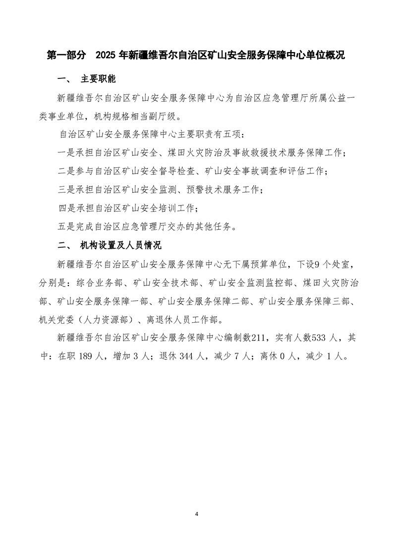 新疆维吾尔自治区矿山安全服务保障中心2025年单位预算公开报告
