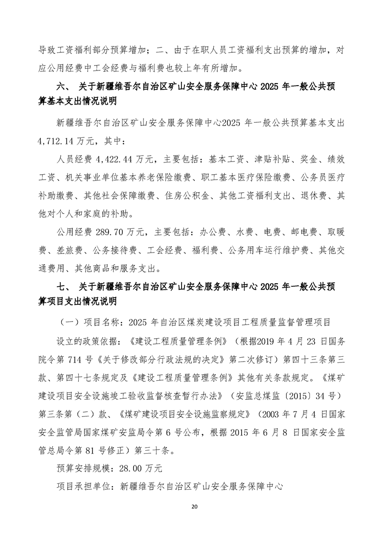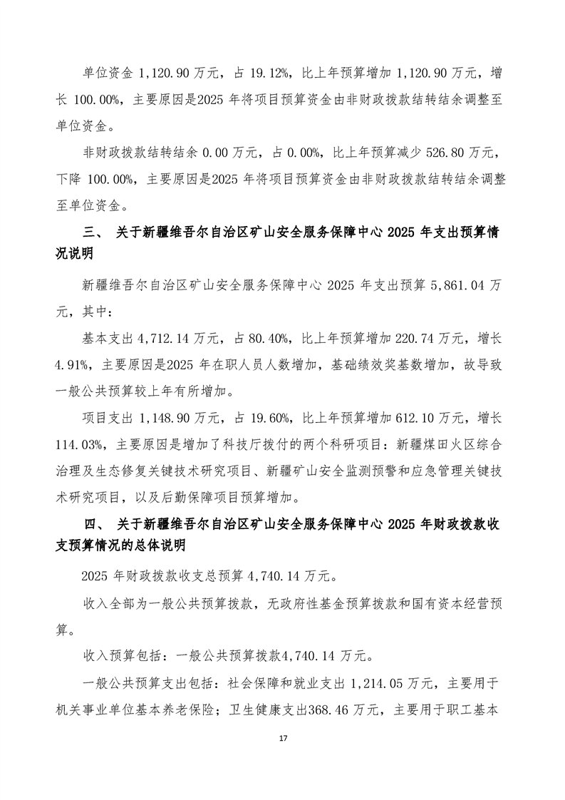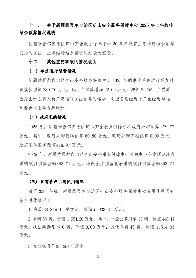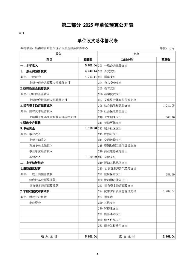 新疆维吾尔自治区矿山安全服务保障中心2025年单位预算公开报告