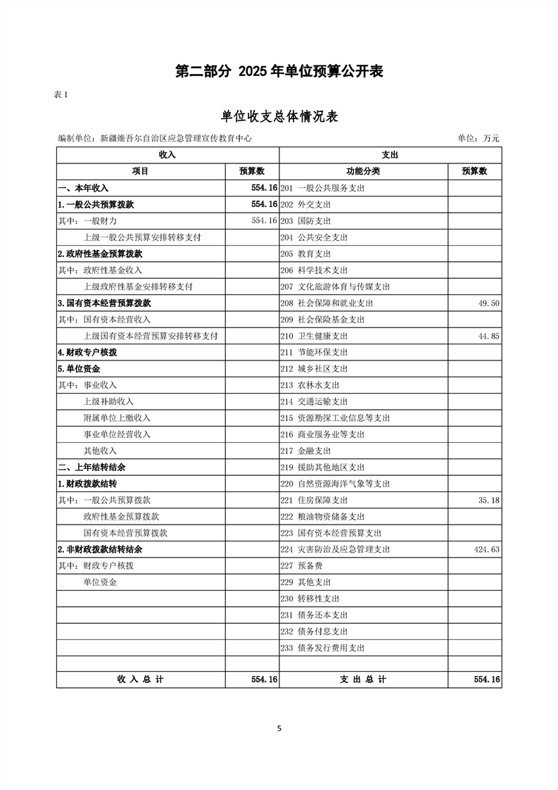 新疆维吾尔自治区应急管理宣传教育中心2025年单位预算公开报告