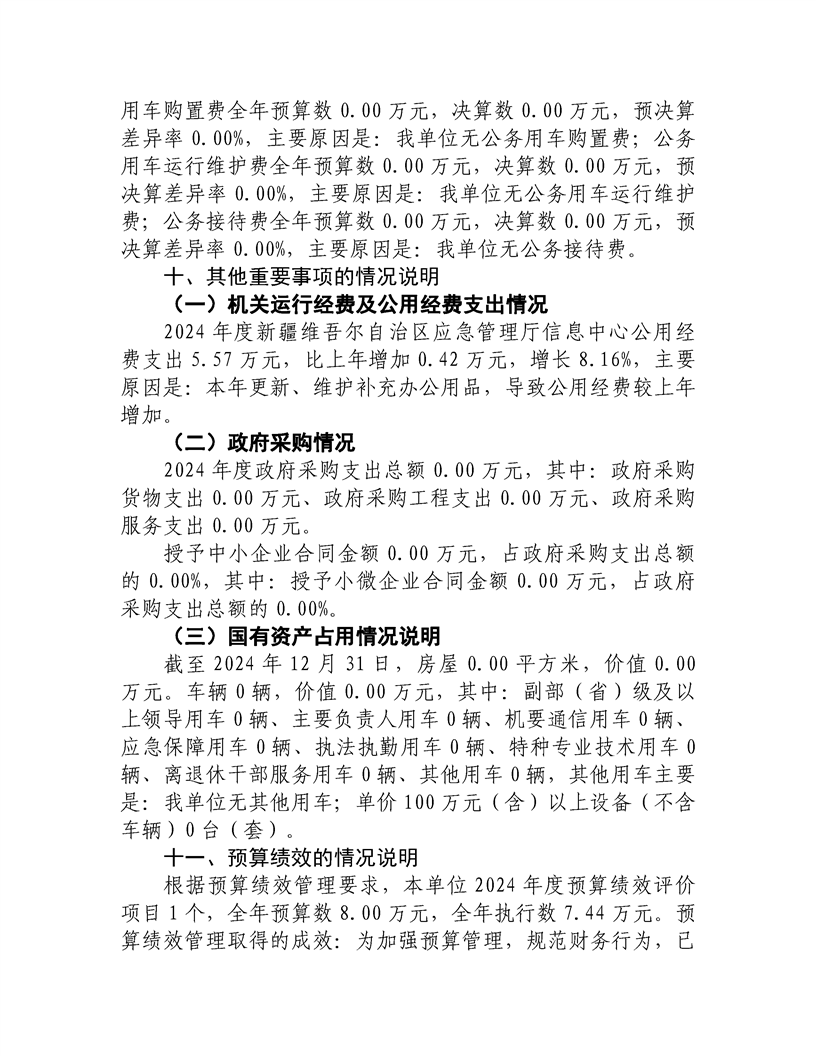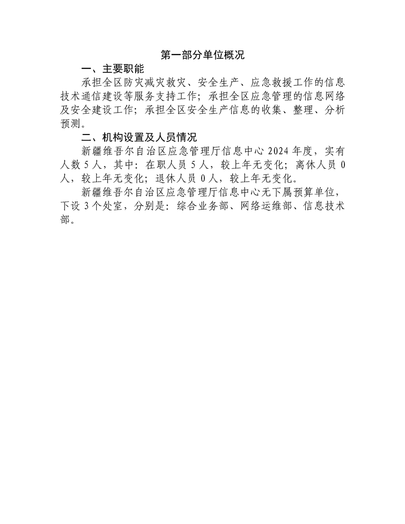 2024年度新疆维吾尔自治区应急管理厅信息中心决算公开