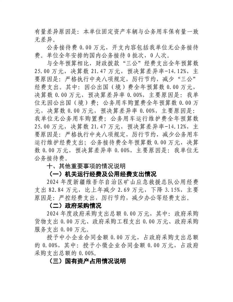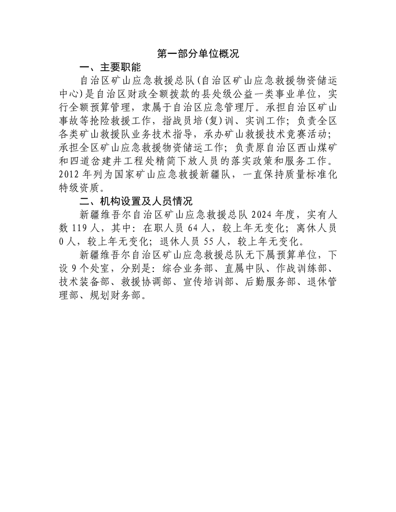 2024年度新疆维吾尔自治区矿山应急救援总队决算公开