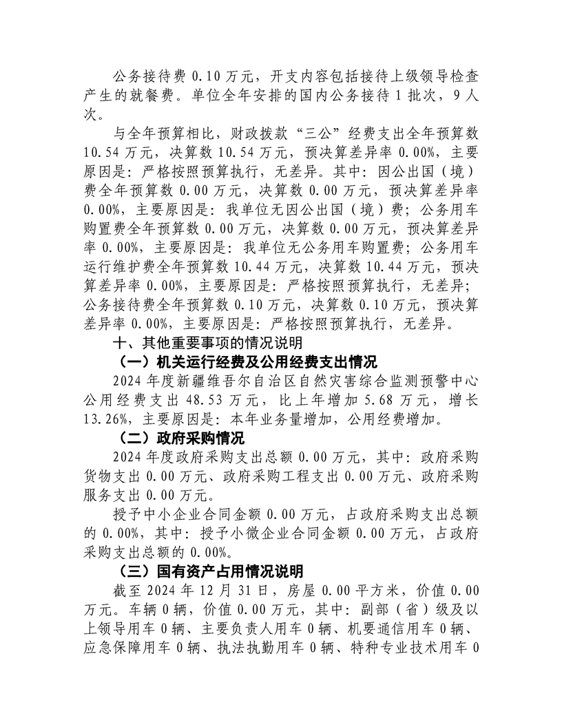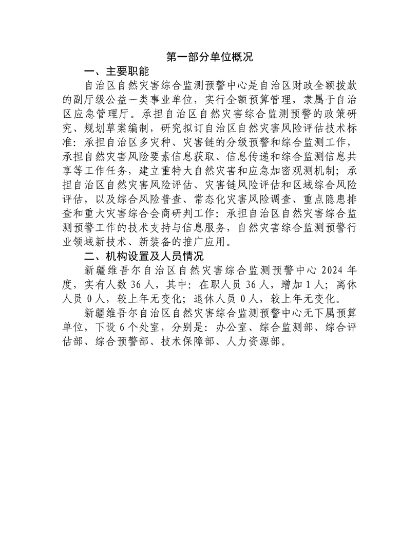 2024年度新疆维吾尔自治区自然灾害综合监测预警中心决算公开