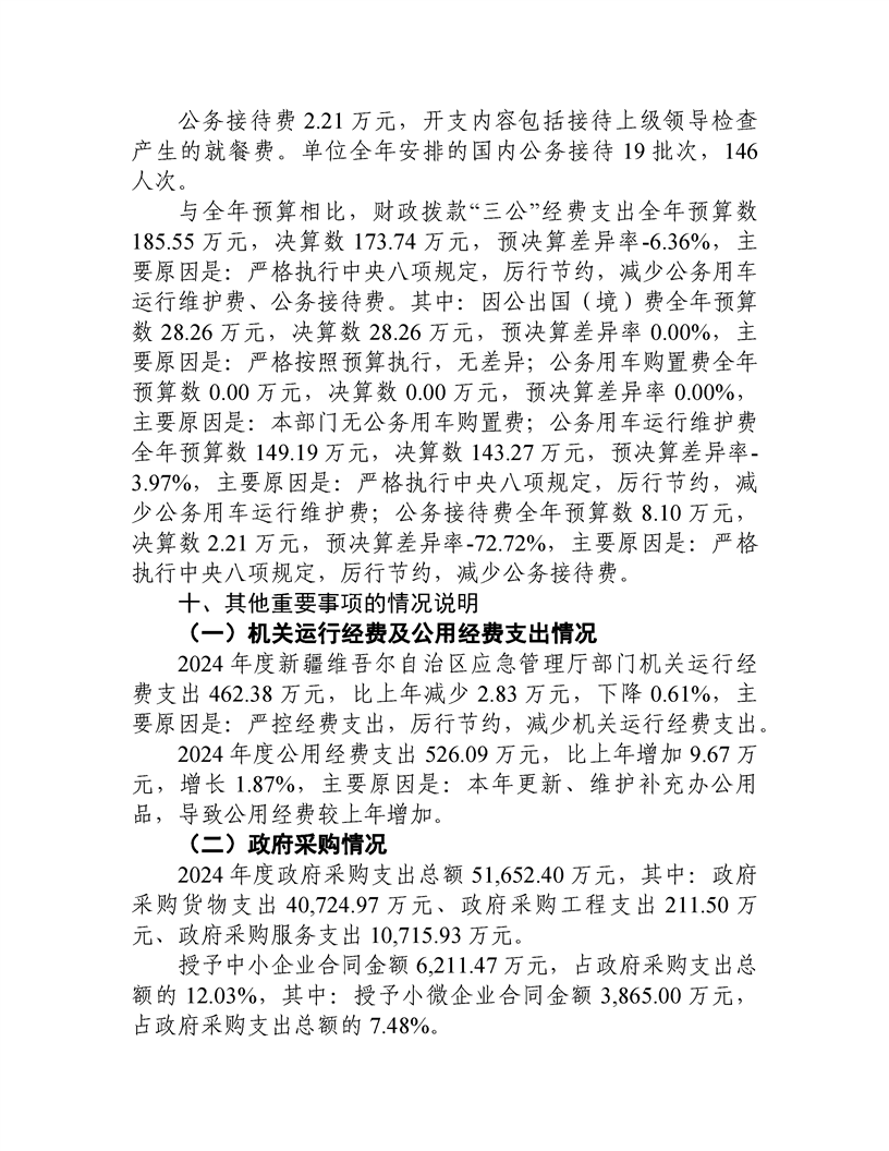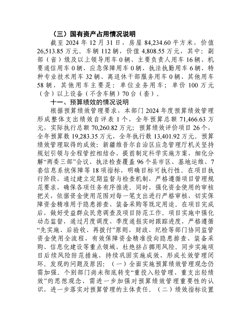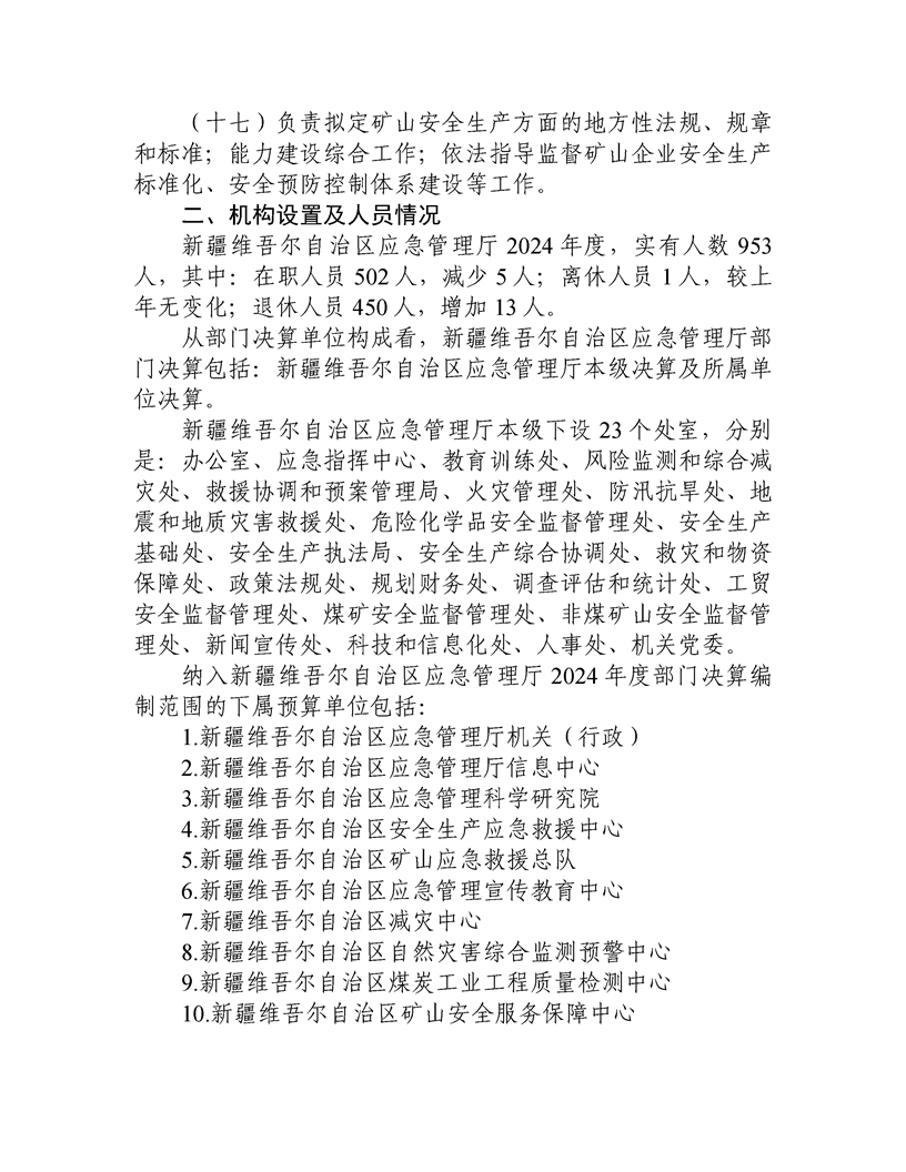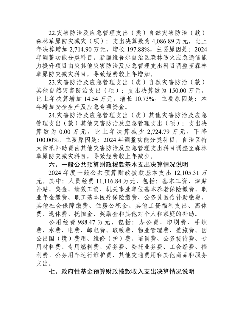 2024年度新疆维吾尔自治区应急管理厅(部门)决算公开