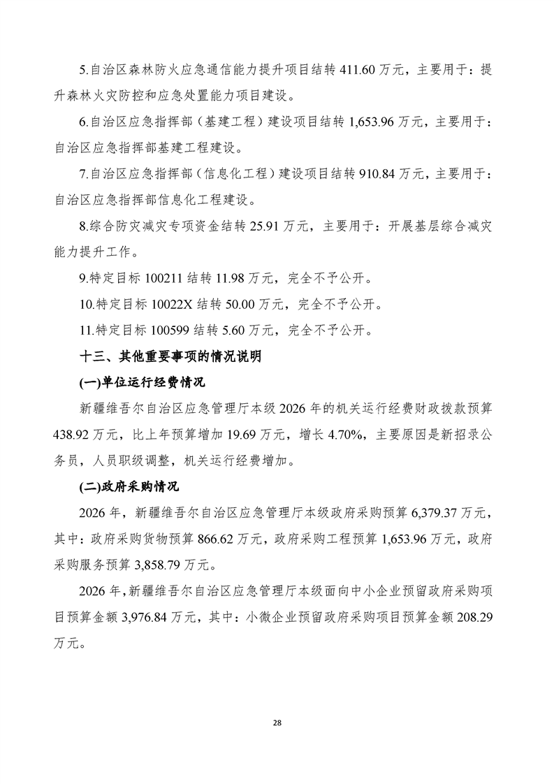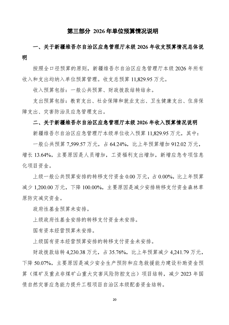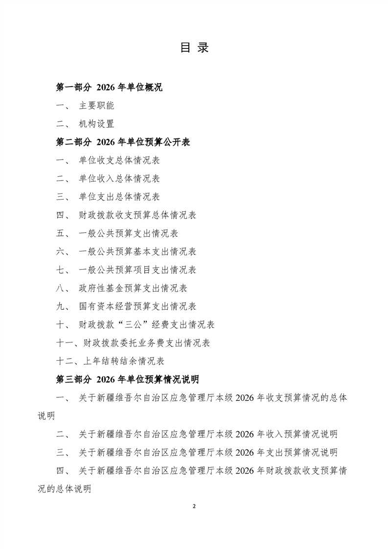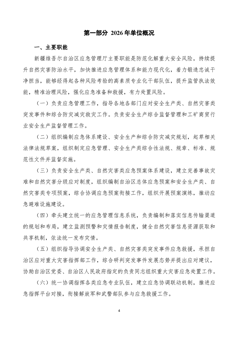 自治区应急管理厅本级2026年单位预算公开报告