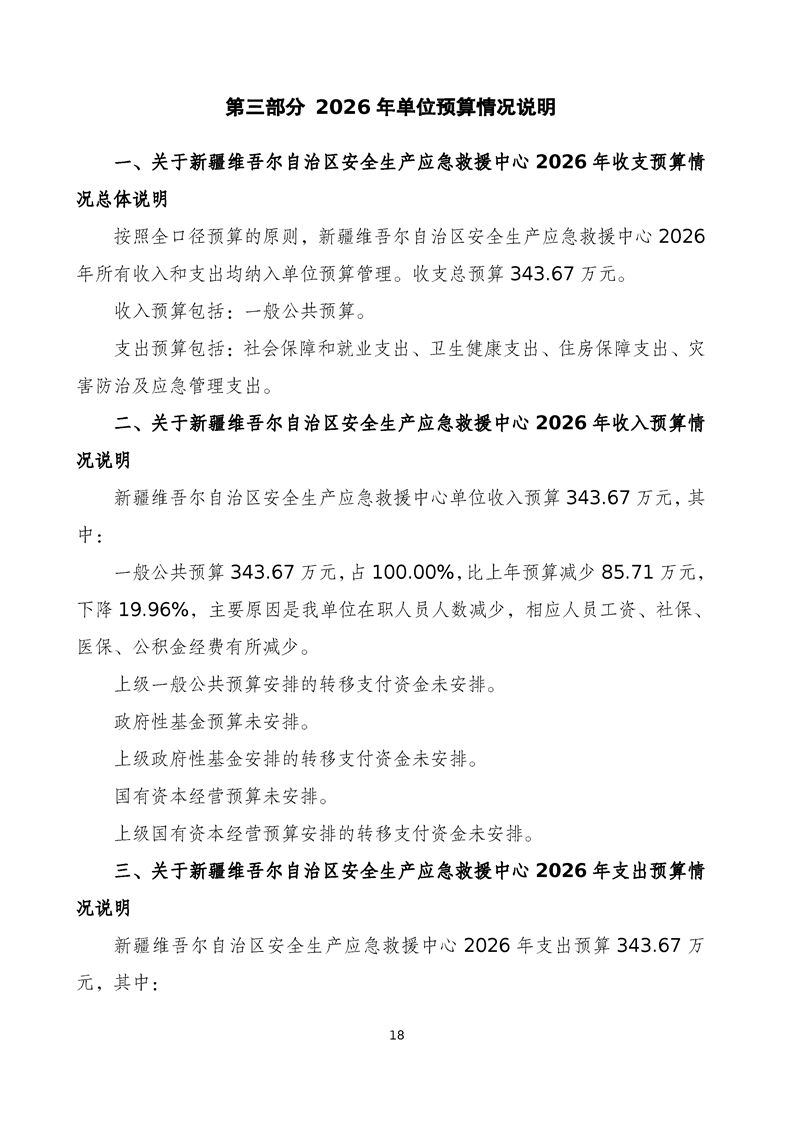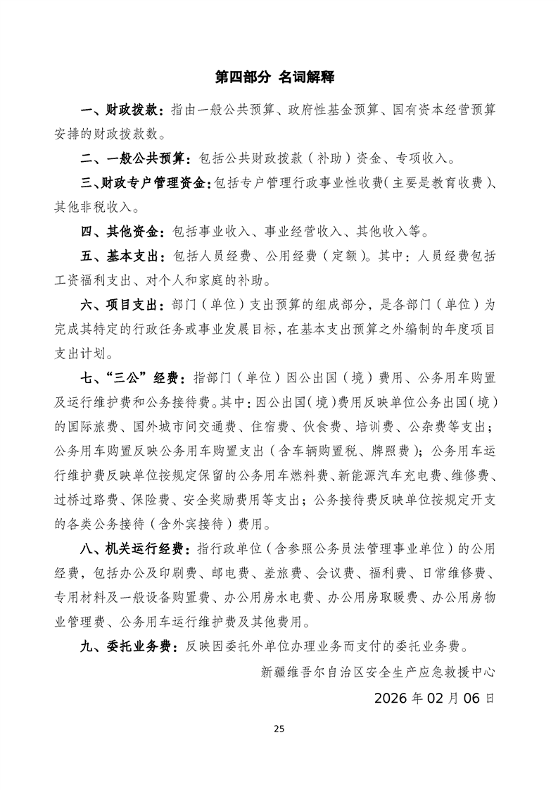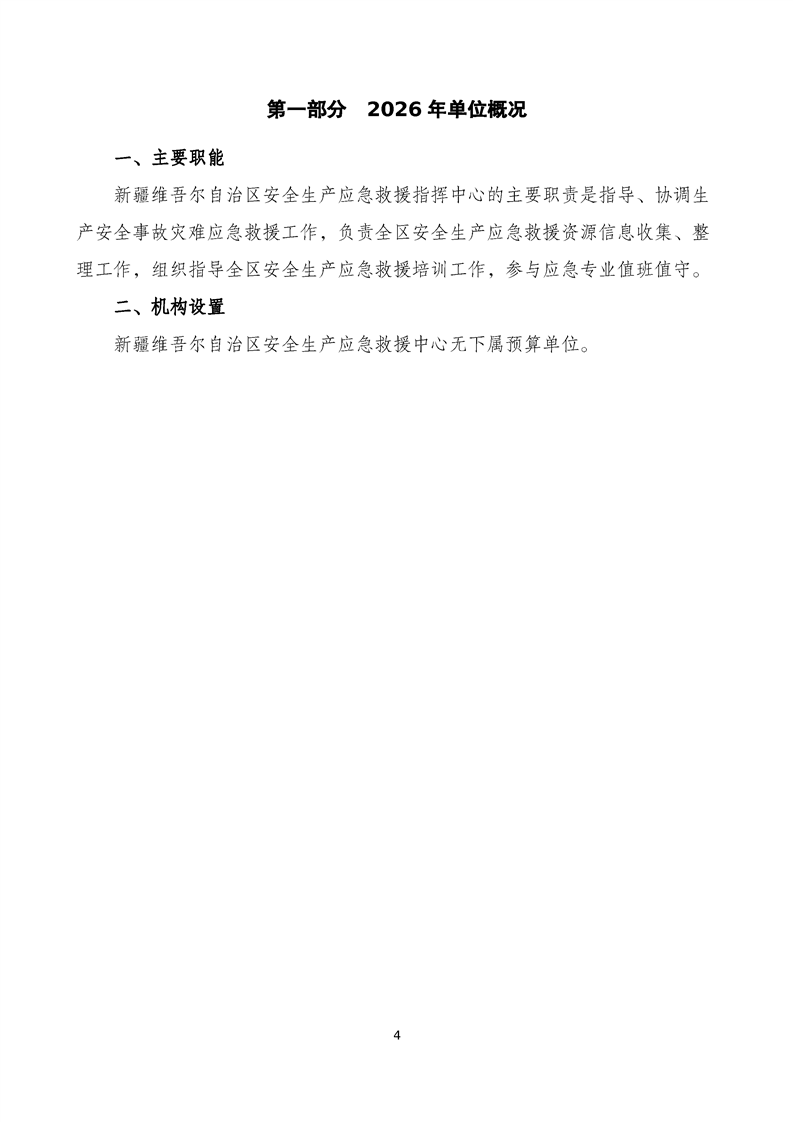 新疆维吾尔自治区安全生产应急救援中心2026年单位预算公开报告
