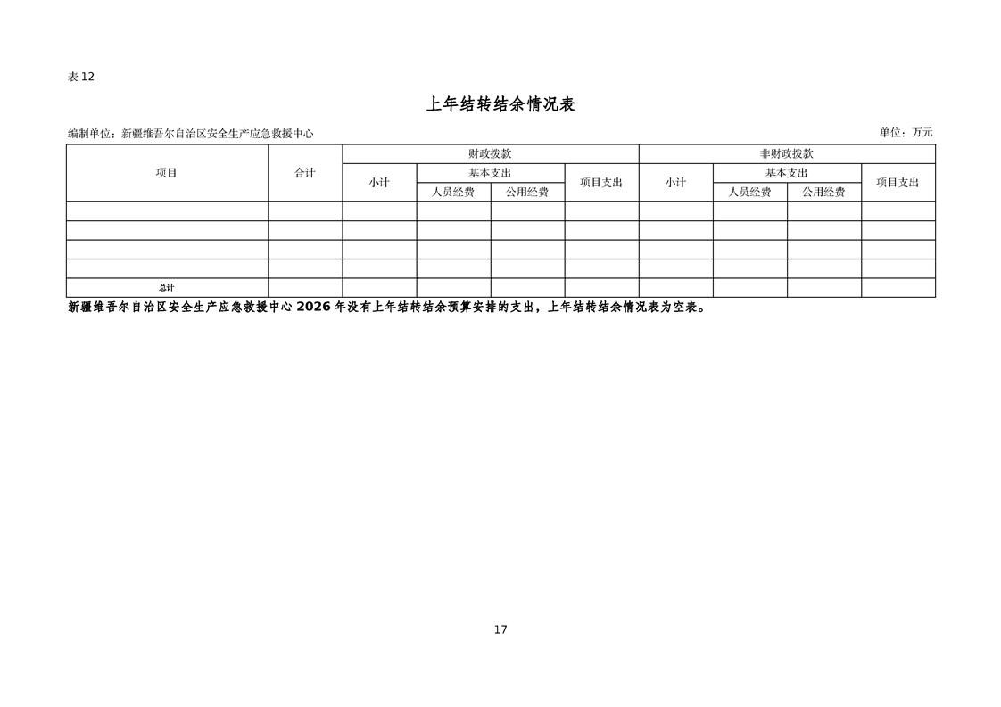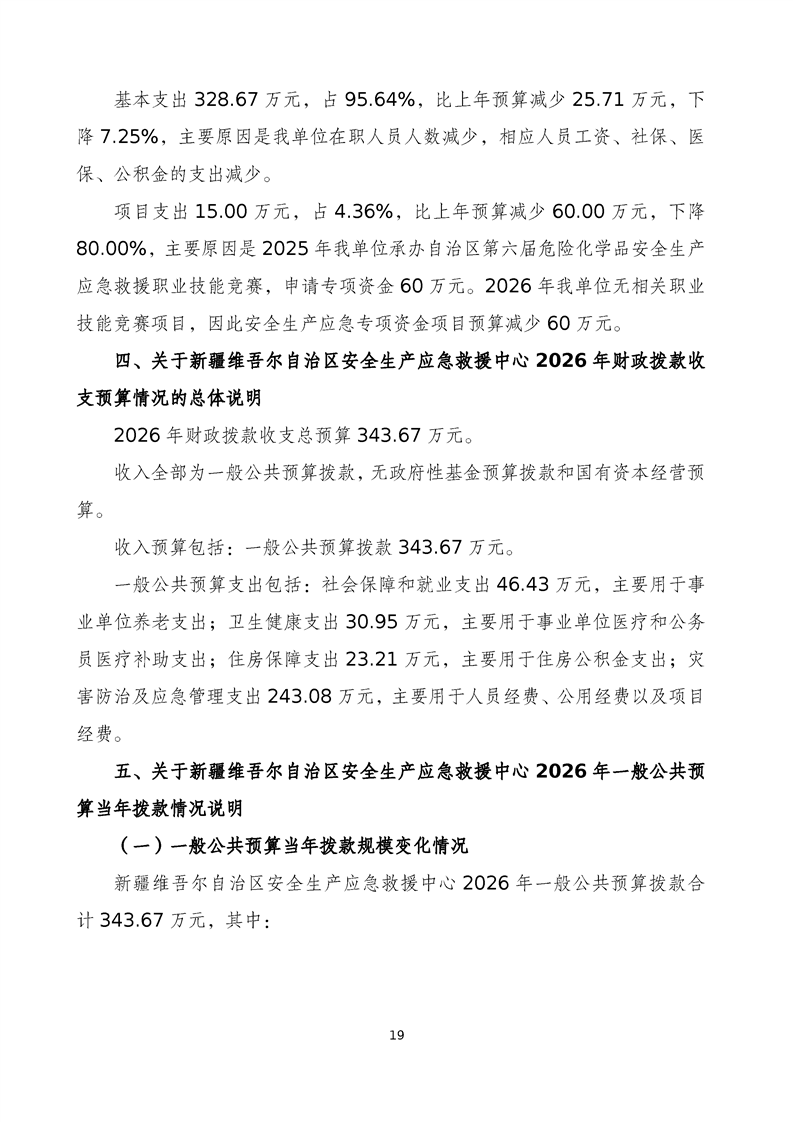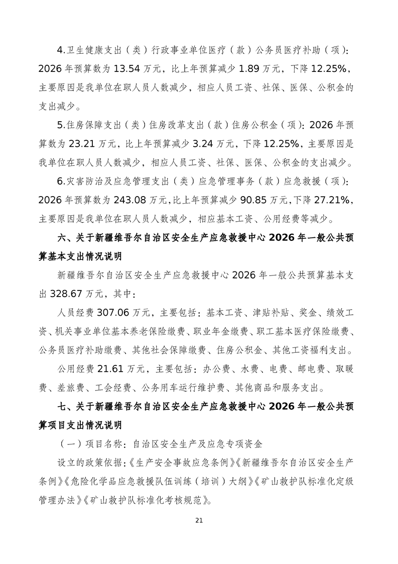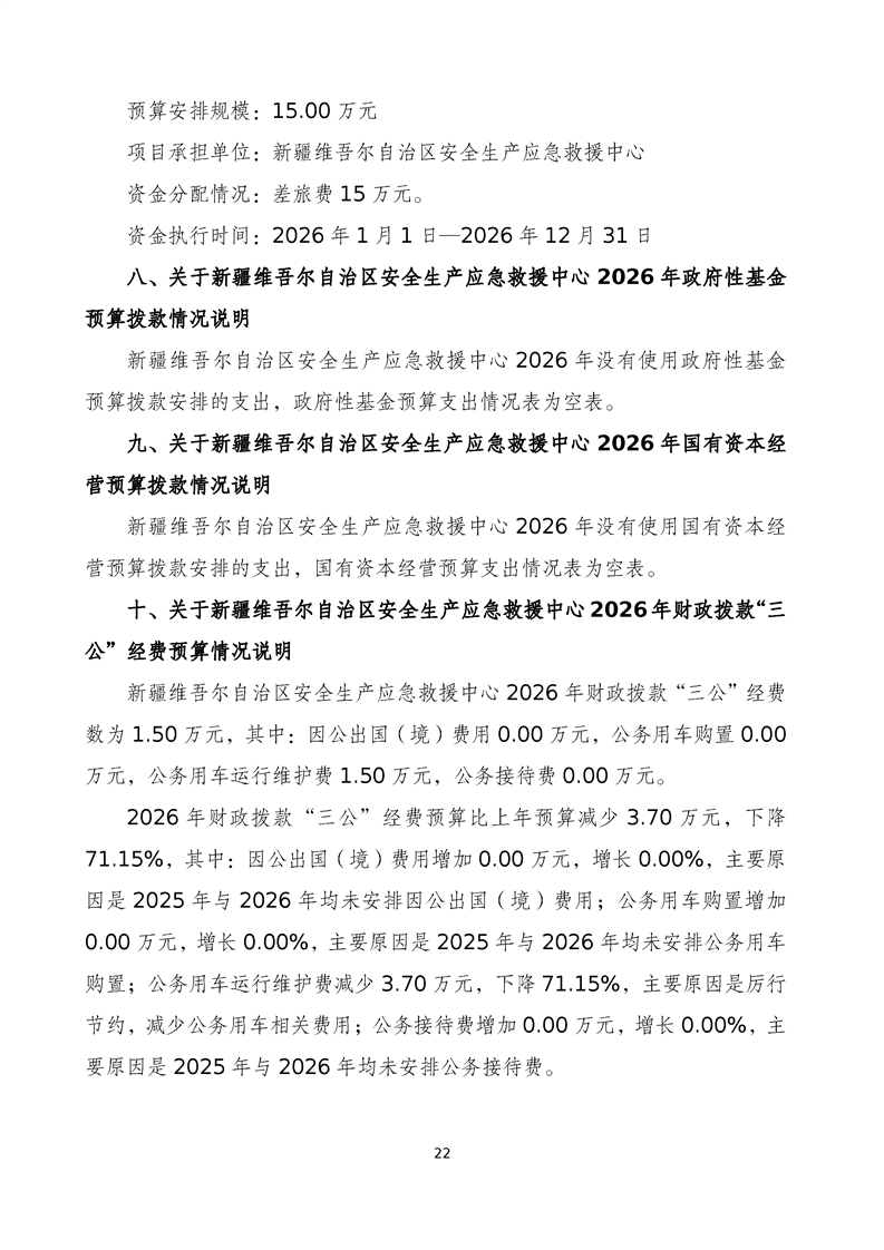 新疆维吾尔自治区安全生产应急救援中心2026年单位预算公开报告