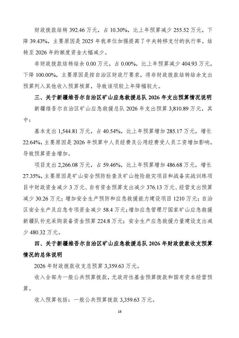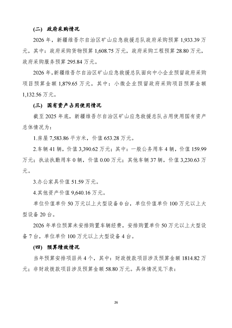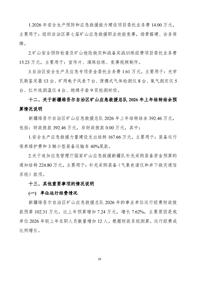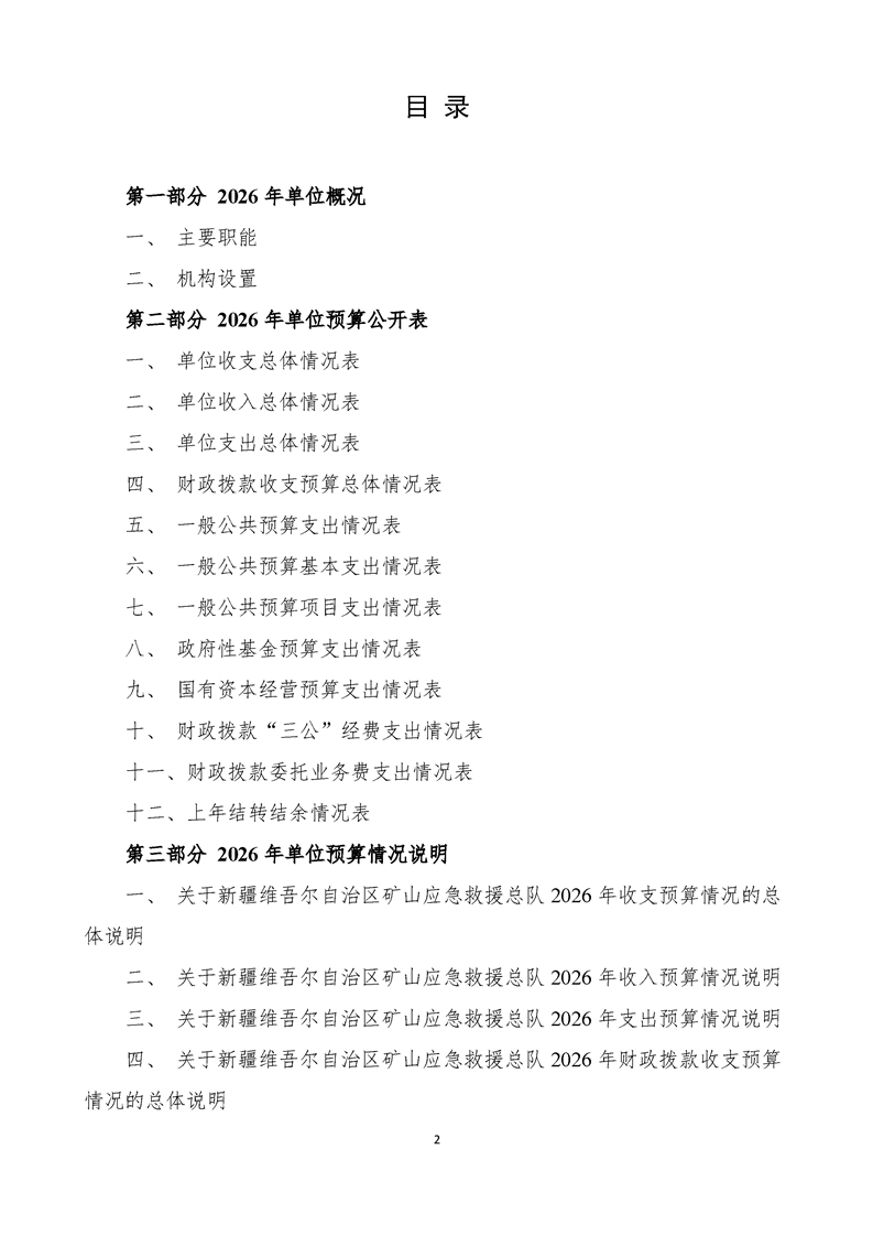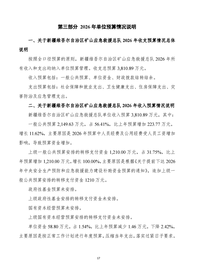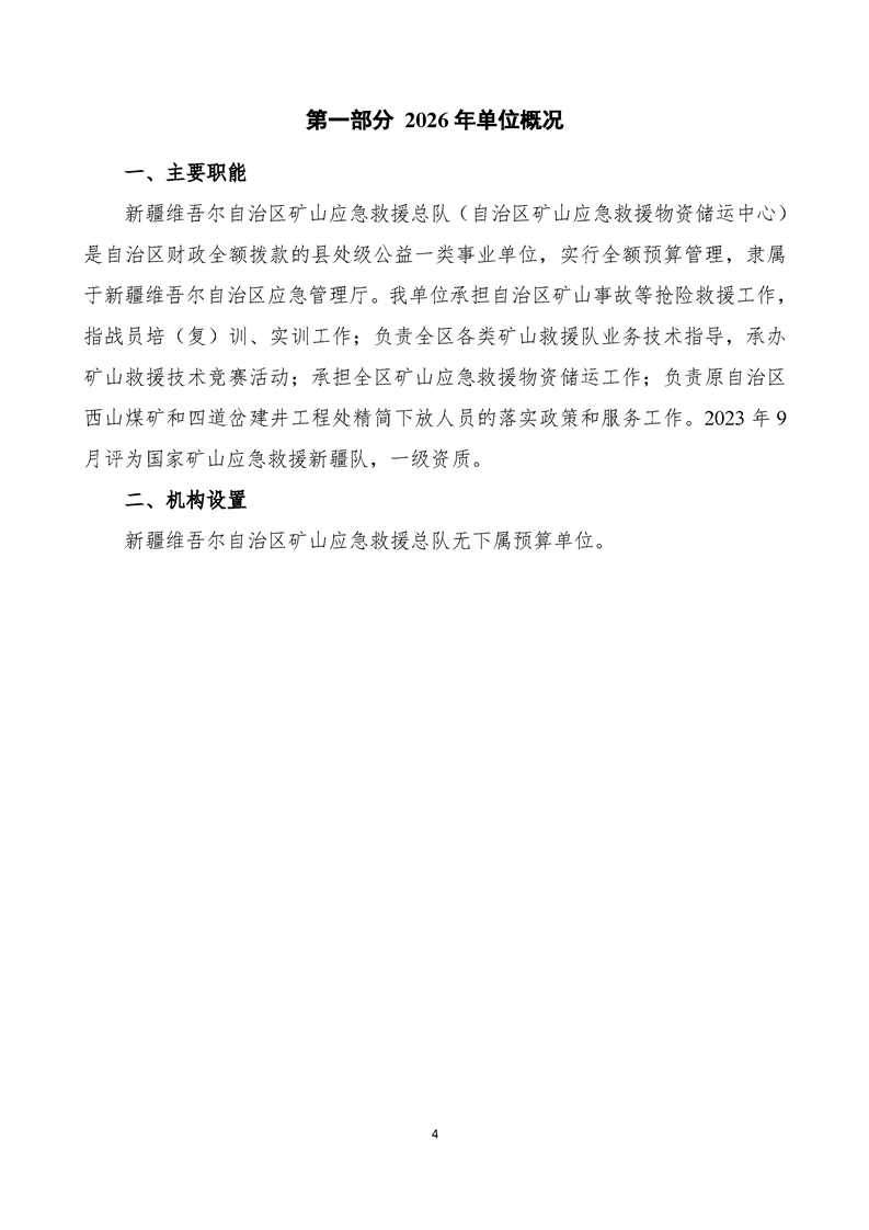 新疆维吾尔自治区矿山应急救援总队2026年单位预算公开报告