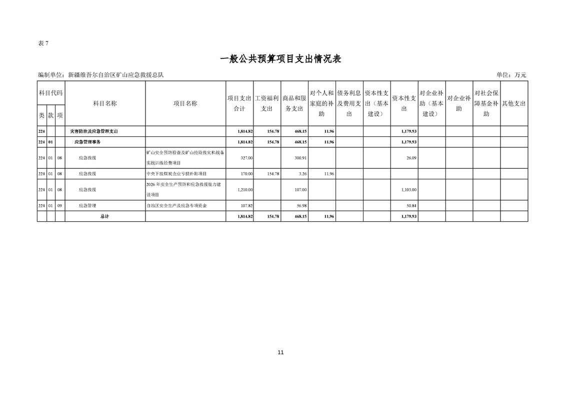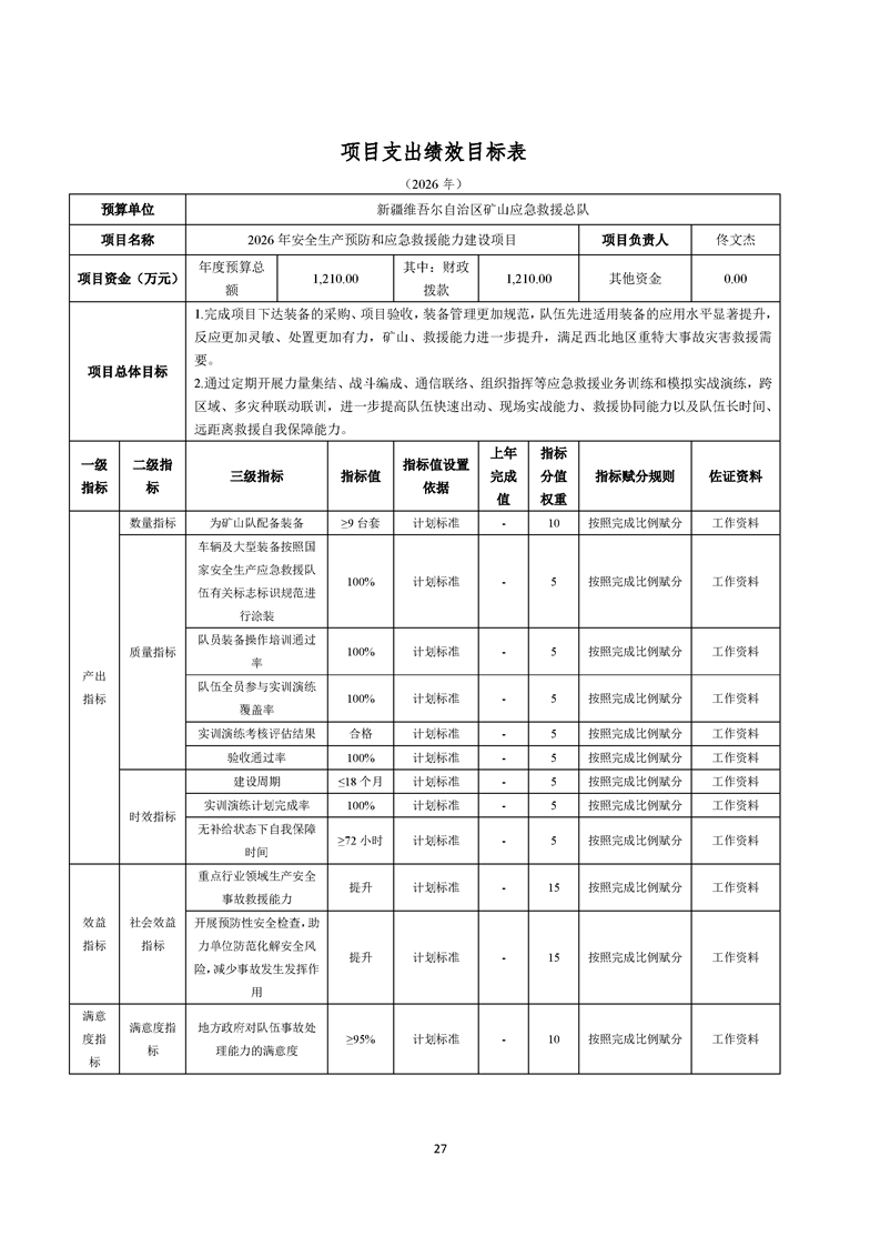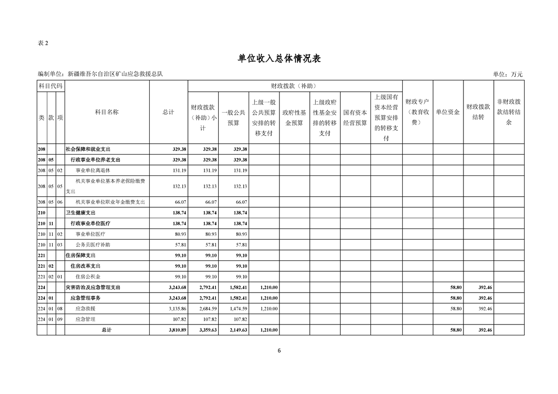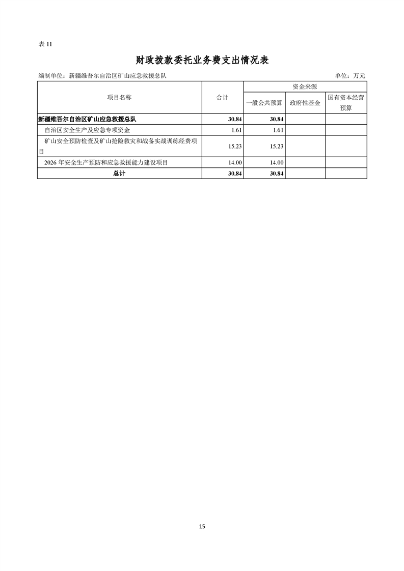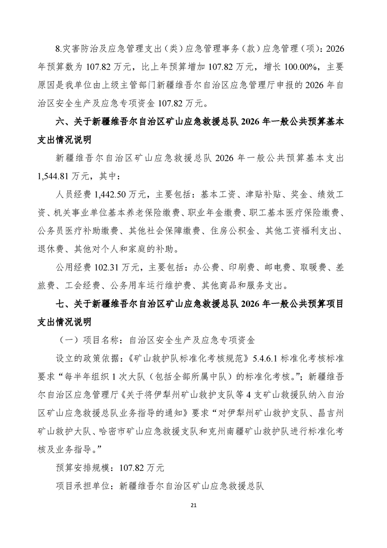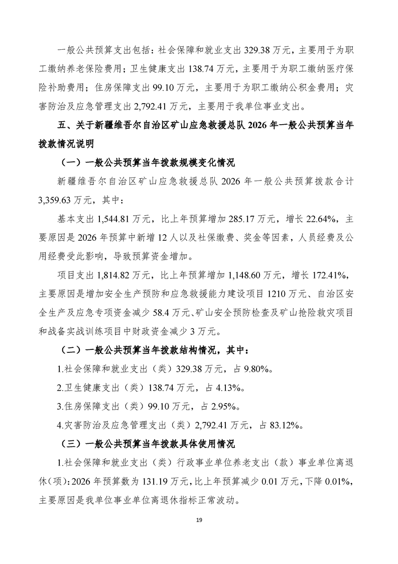 新疆维吾尔自治区矿山应急救援总队2026年单位预算公开报告