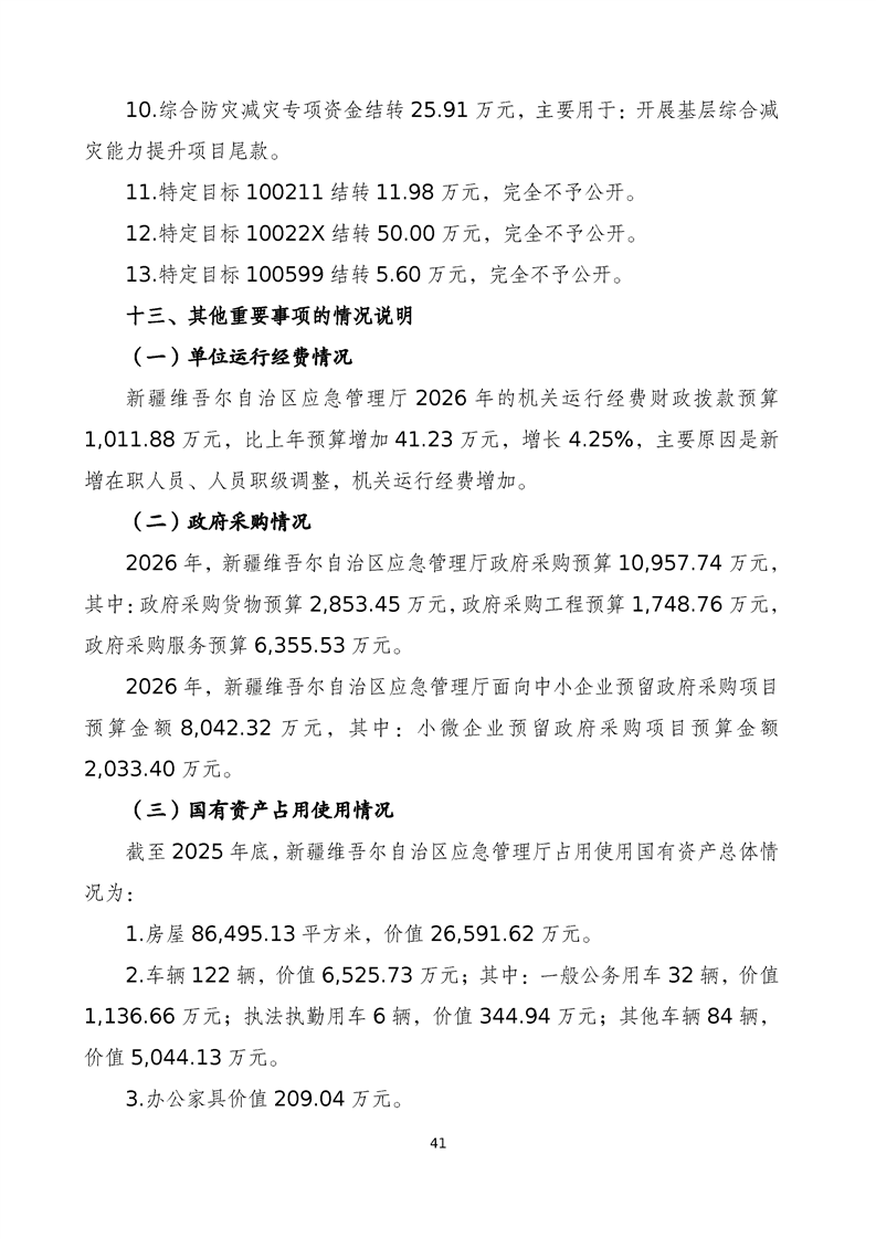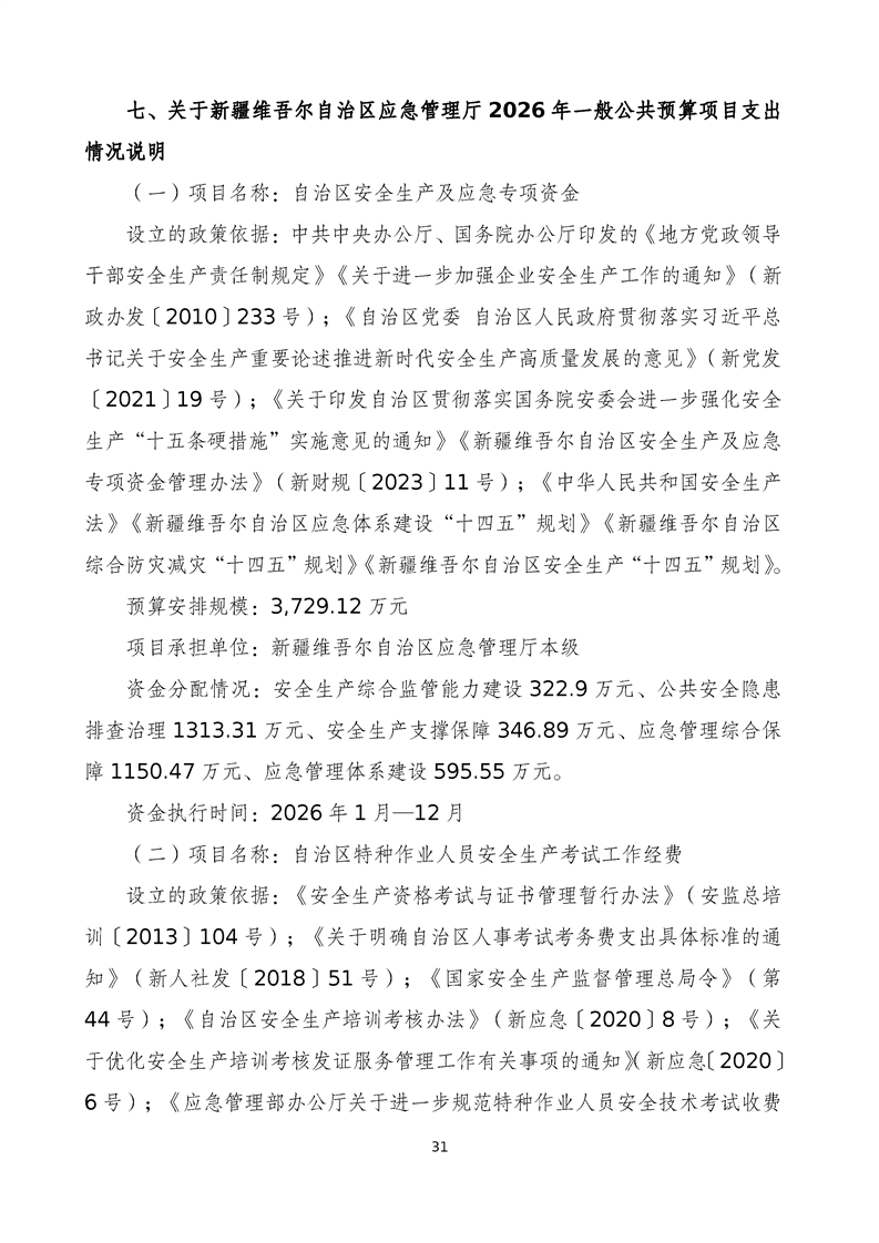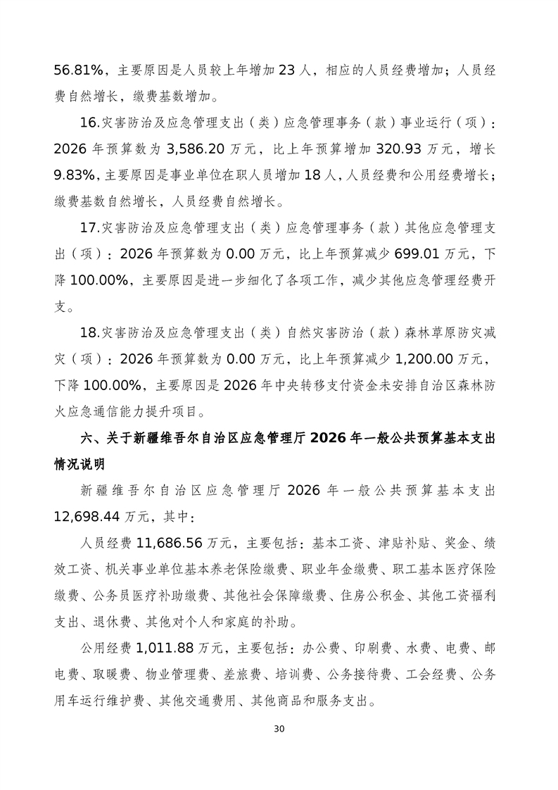 自治区应急管理厅2026年部门预算公开报告
