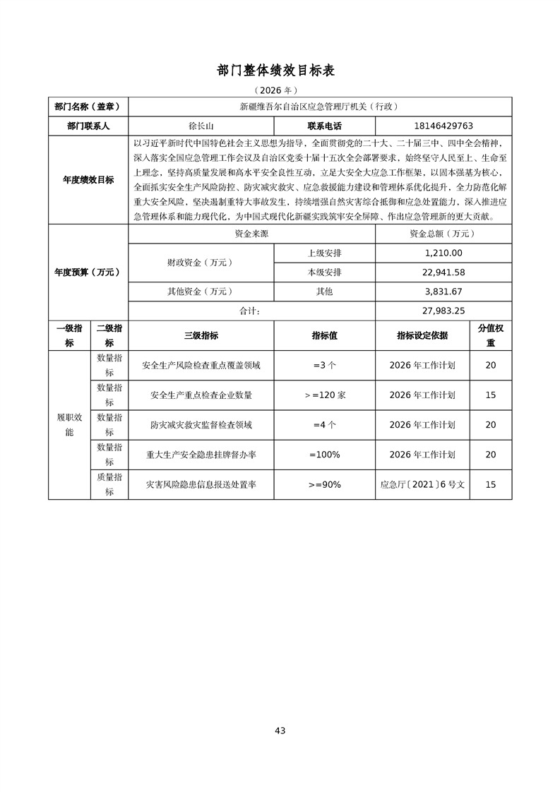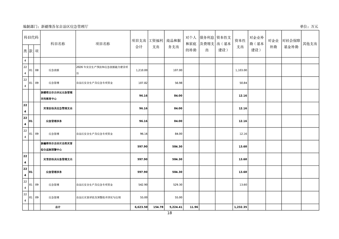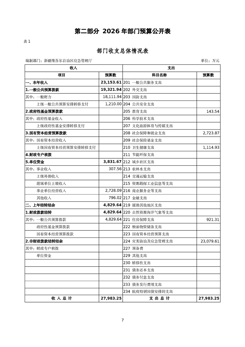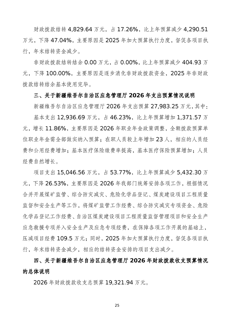 自治区应急管理厅2026年部门预算公开报告