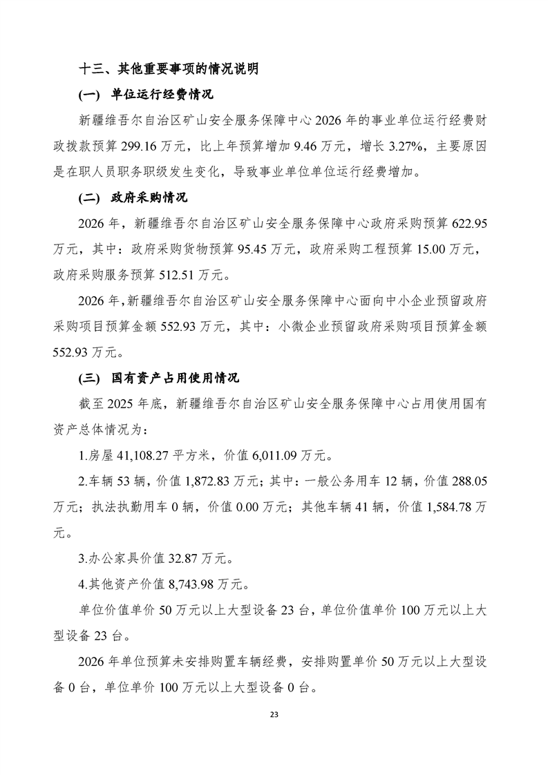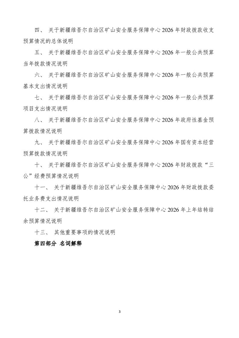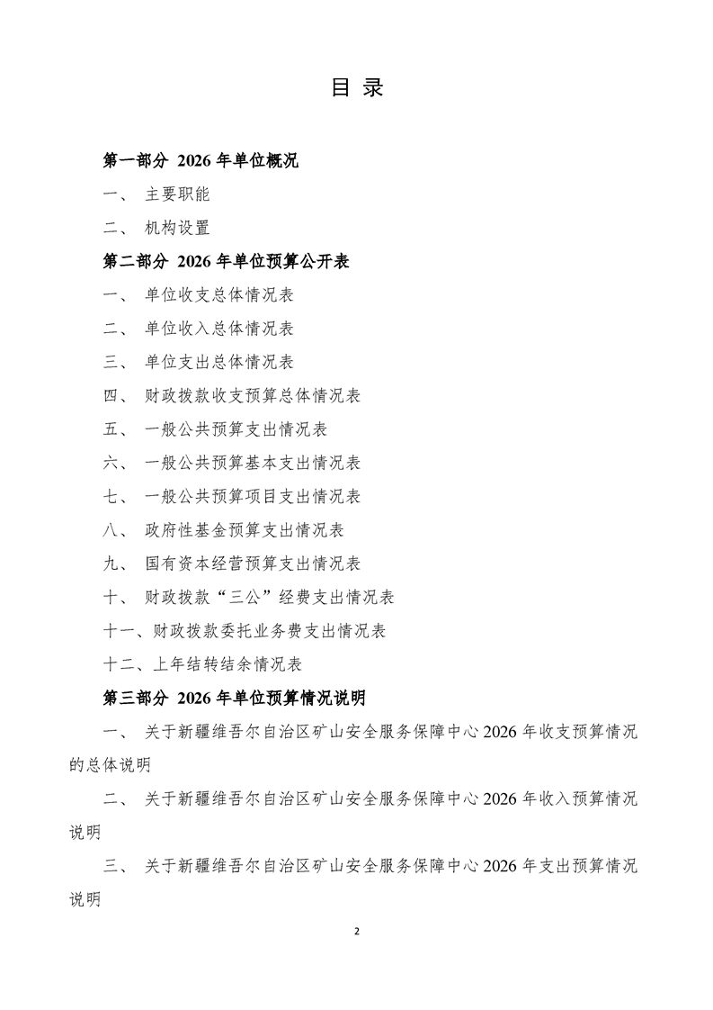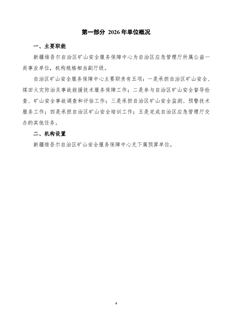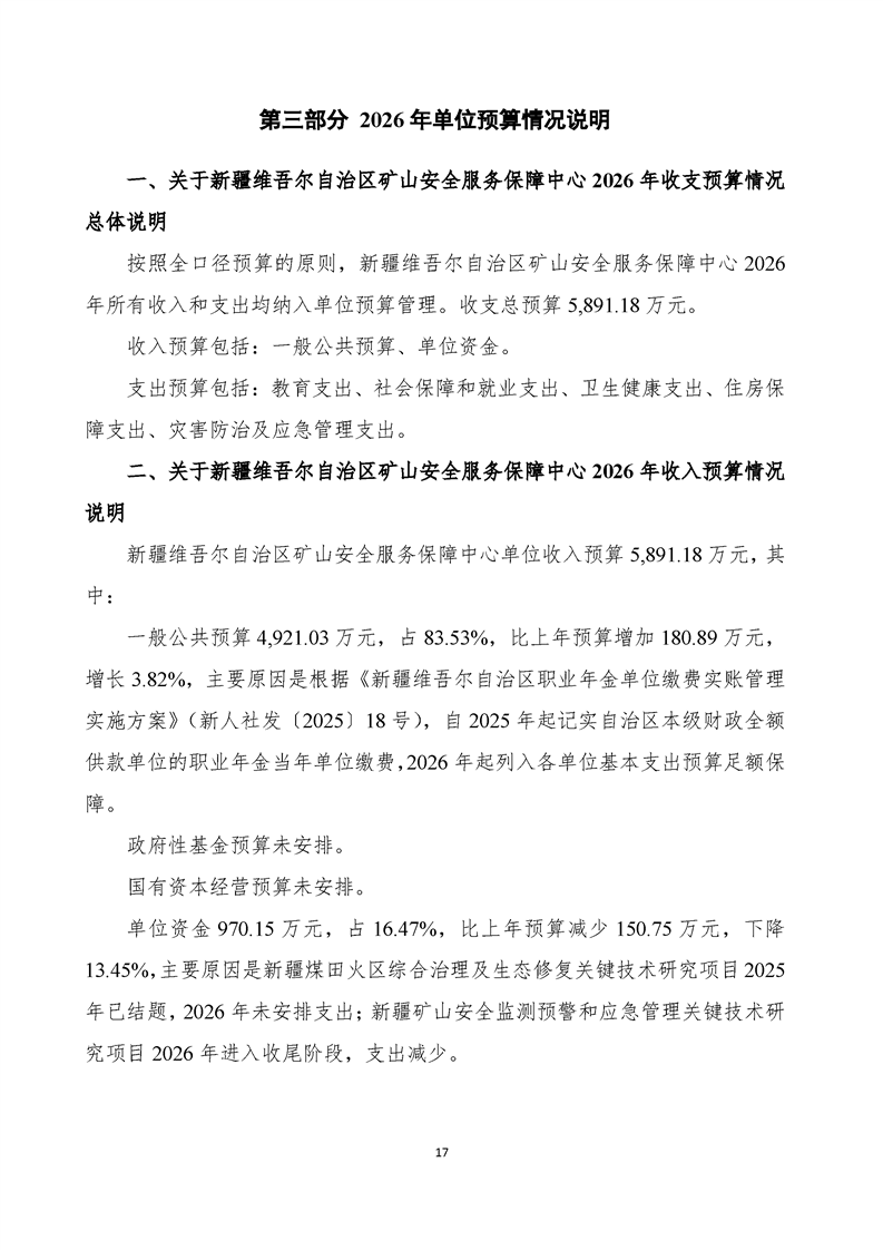 新疆维吾尔自治区矿山安全服务保障中心2026年预算公开报告