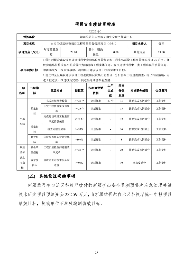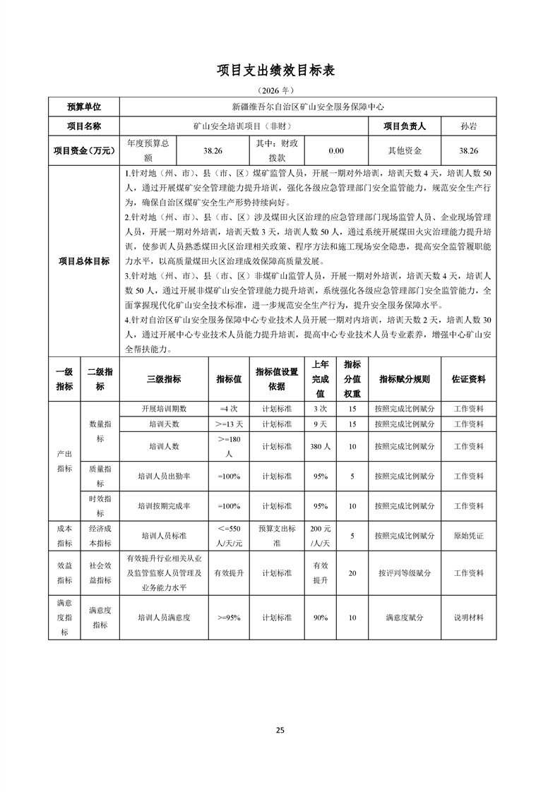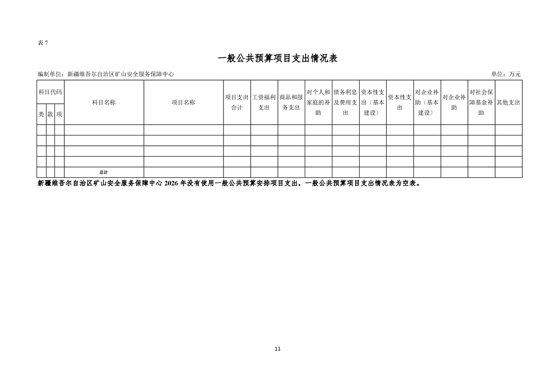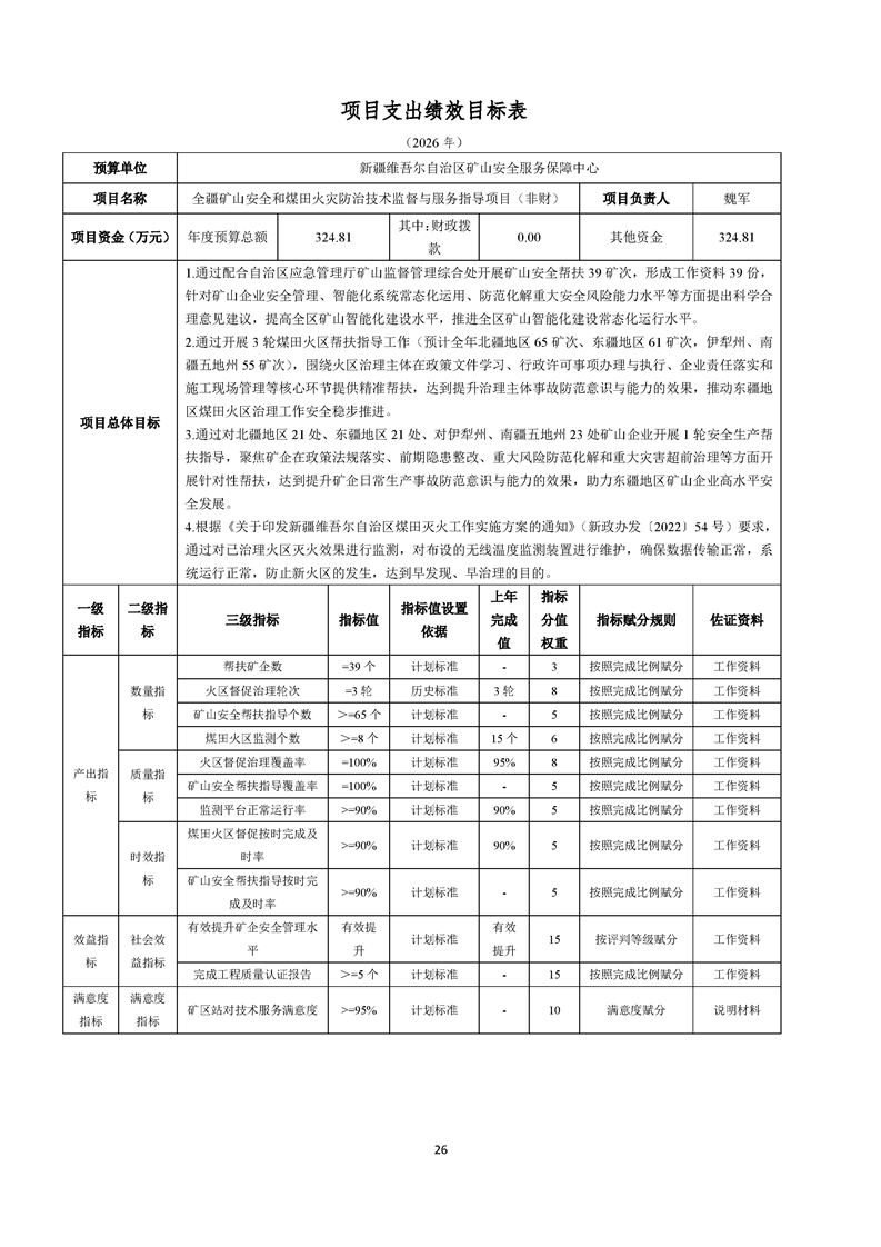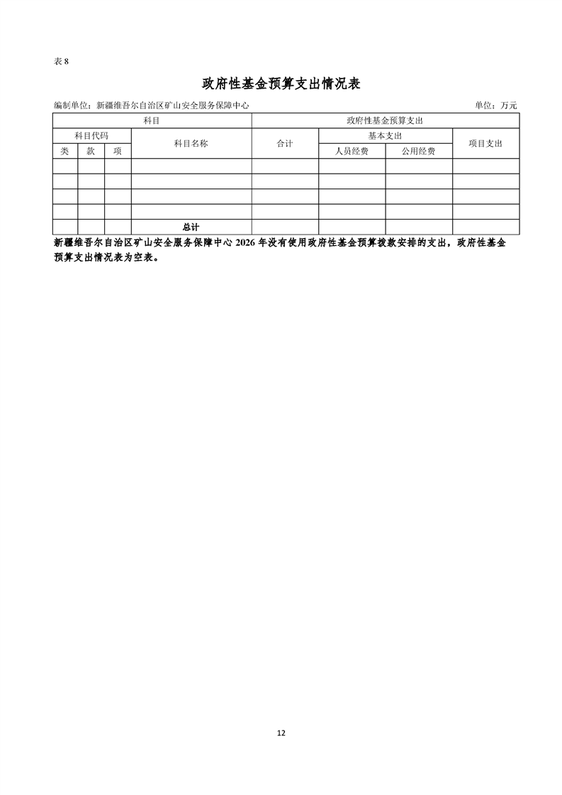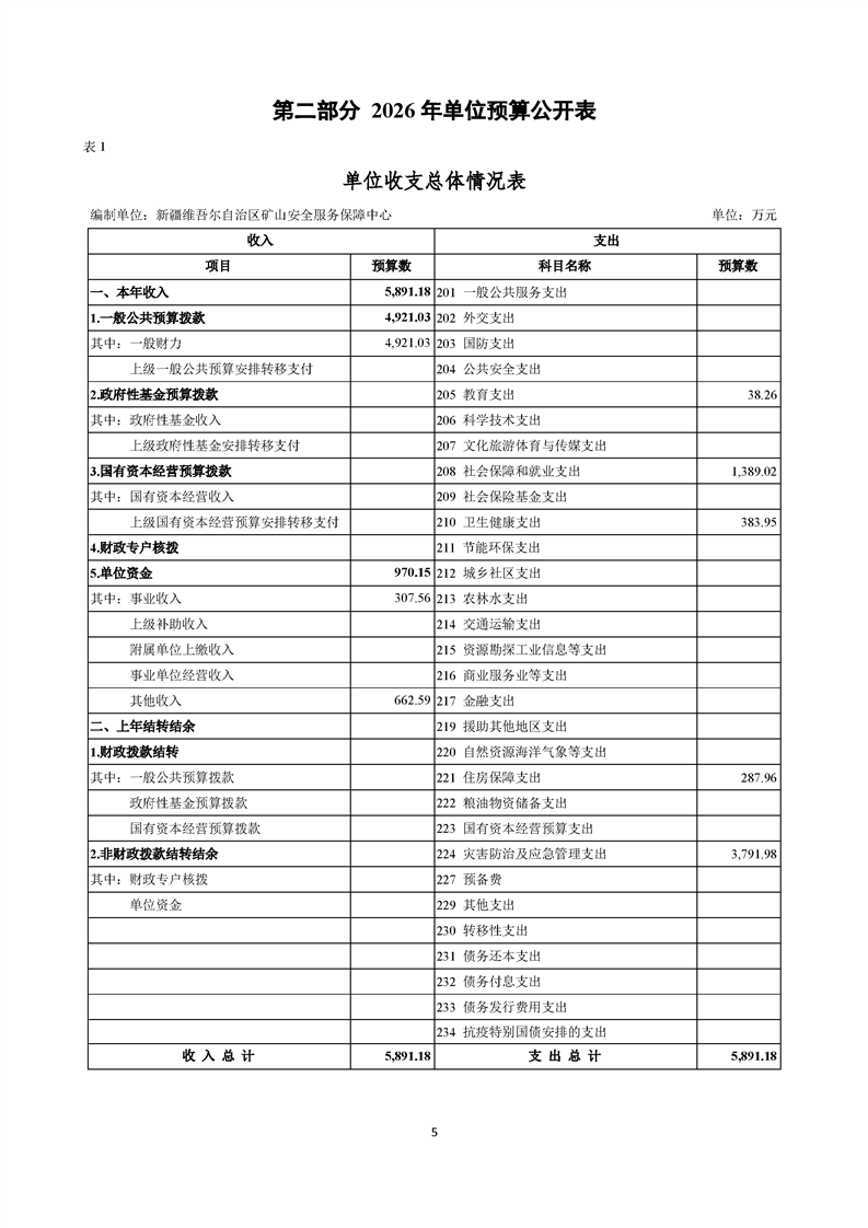 新疆维吾尔自治区矿山安全服务保障中心2026年预算公开报告