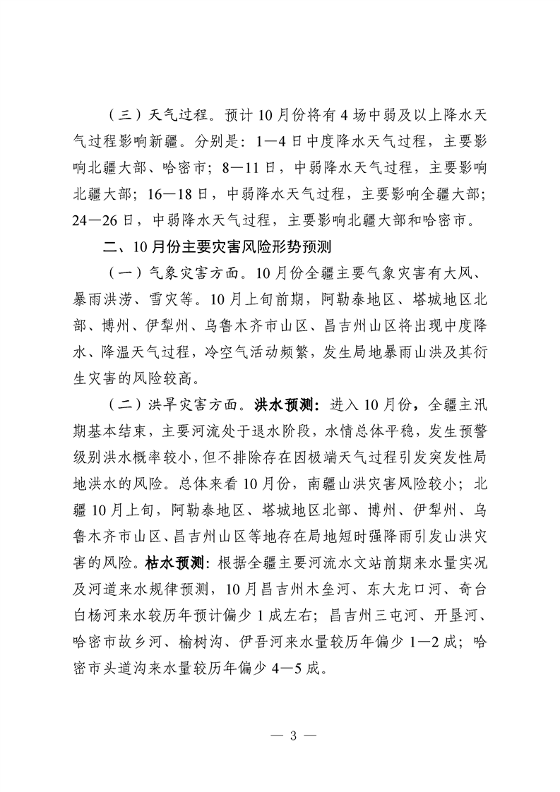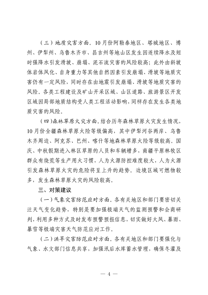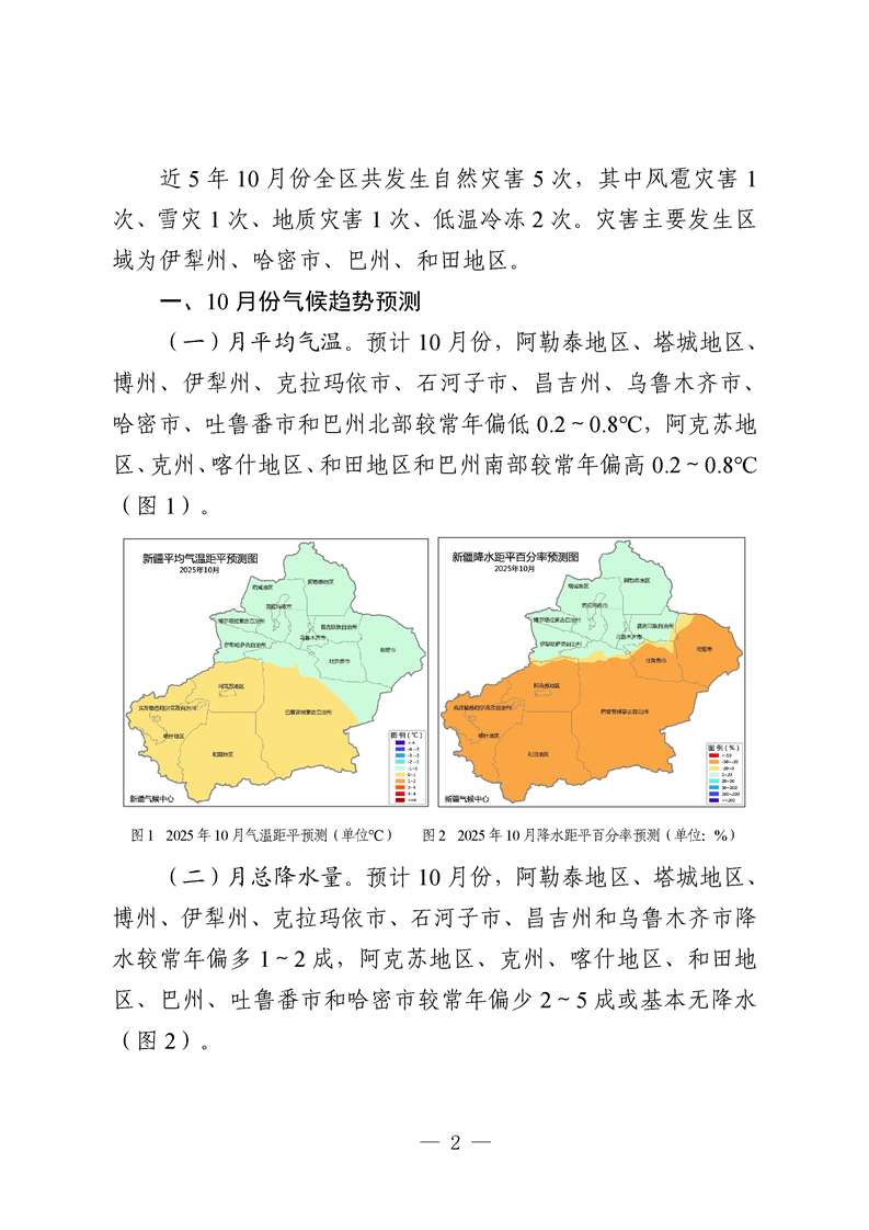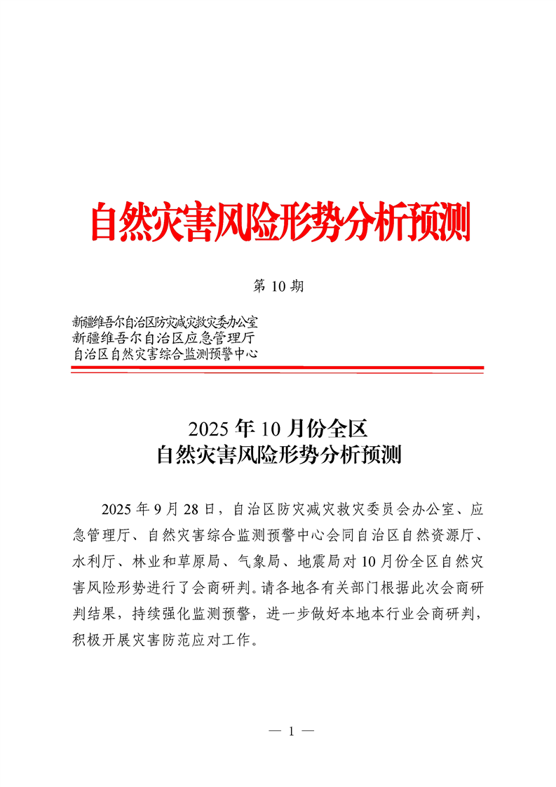 2025年10月份全区自然灾害风险形势分析预测