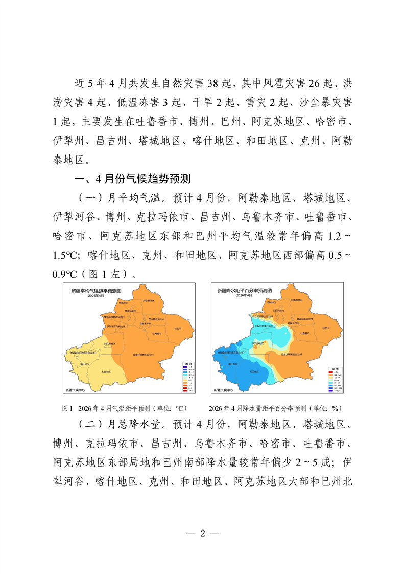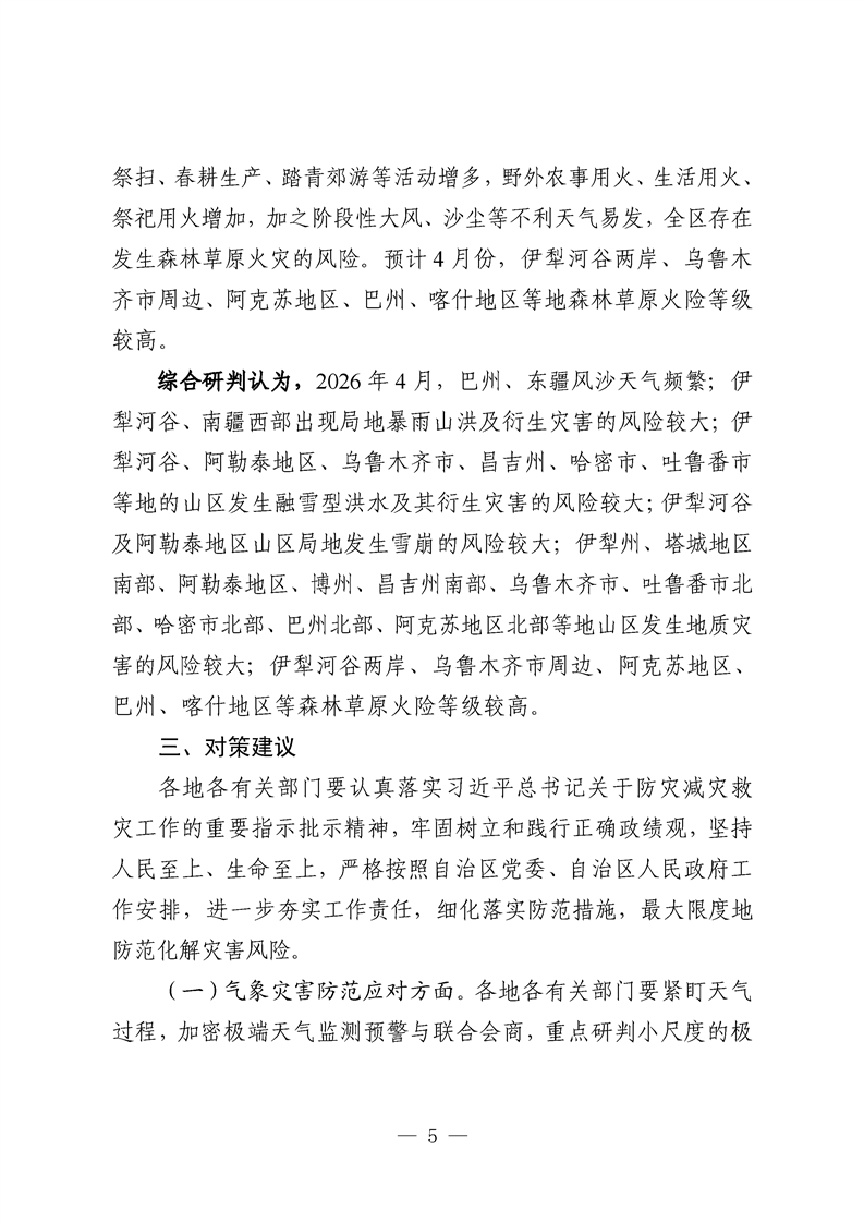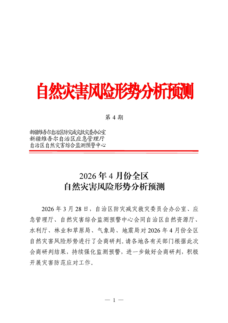 2026年4月份全区自然灾害风险形势分析预测