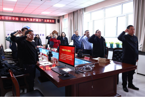 在中国气象局气象干部培训学院新疆分院,党员干部重点学习了习近平总书记关于党的建设的重要论述,随后面向党旗庄严宣誓,重温入党誓词,进一步坚定为党和人民事业奋斗终身的信念。在交流环节,党员干部围绕应急气象协同联动、党员先锋模范作用发挥等内容开展座谈,深入探讨新形势下加强党建引领、提升防灾减灾效能的新思路新举措,彰显了“党建引领,业务互促”的融合力量。