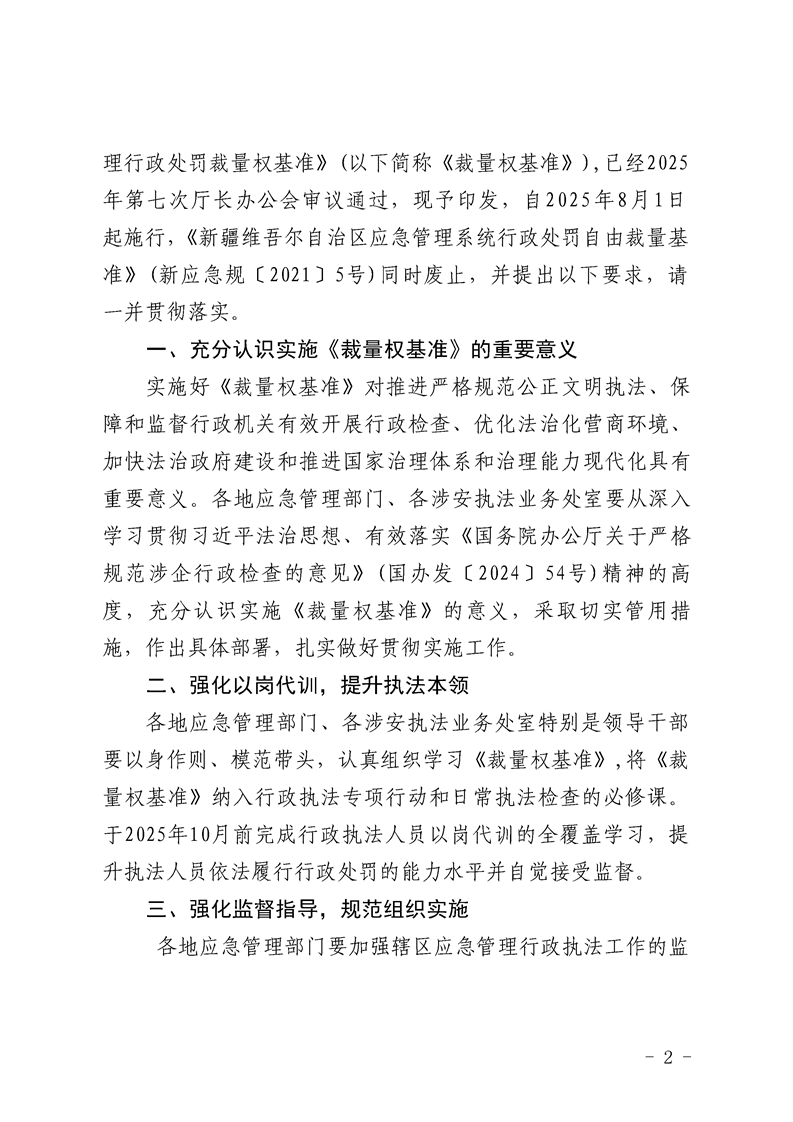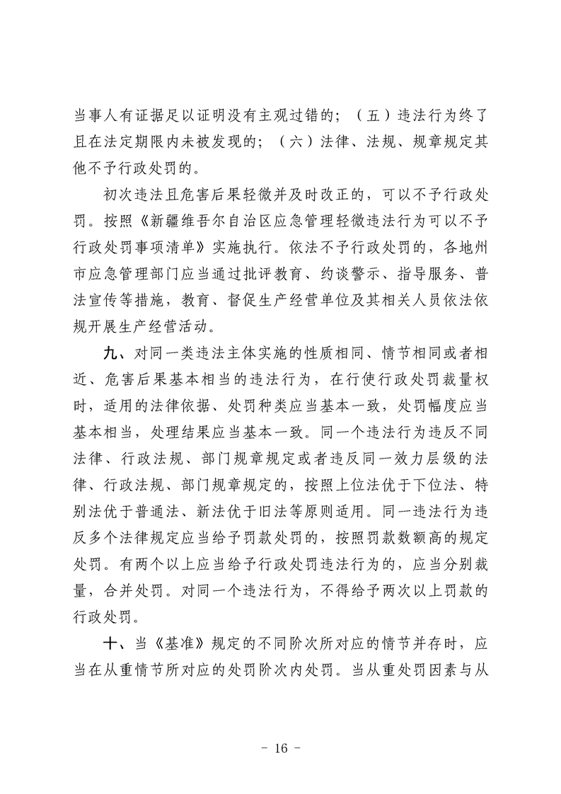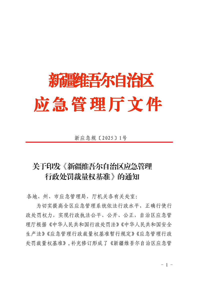关于印发《新疆维吾尔自治区应急管理行政处罚裁量权基准》的通知