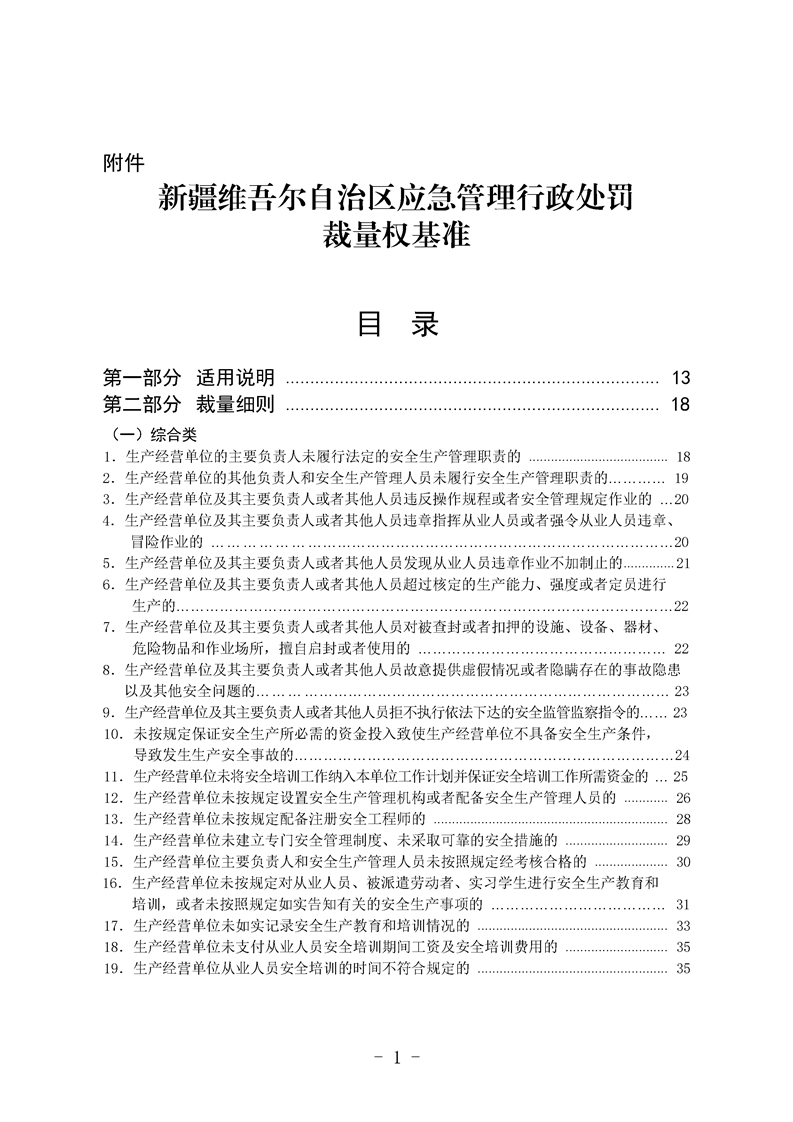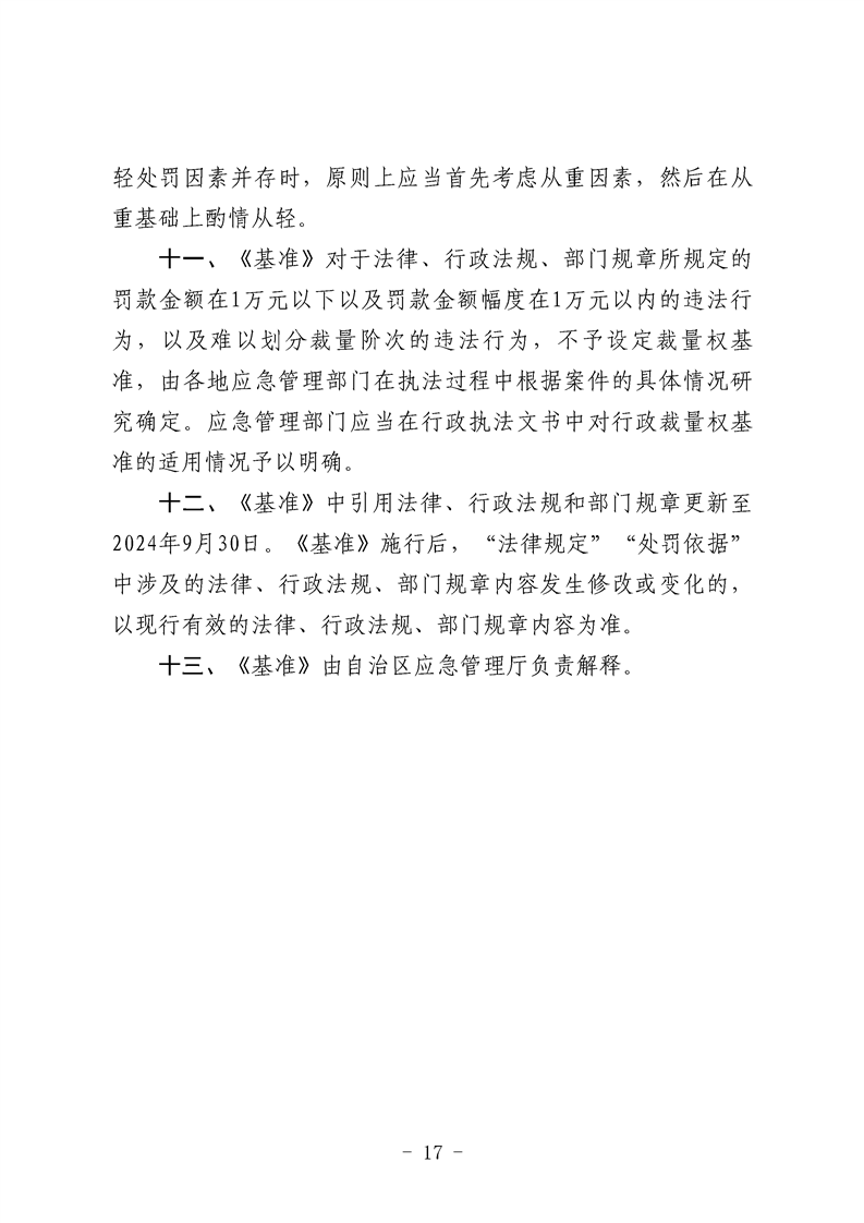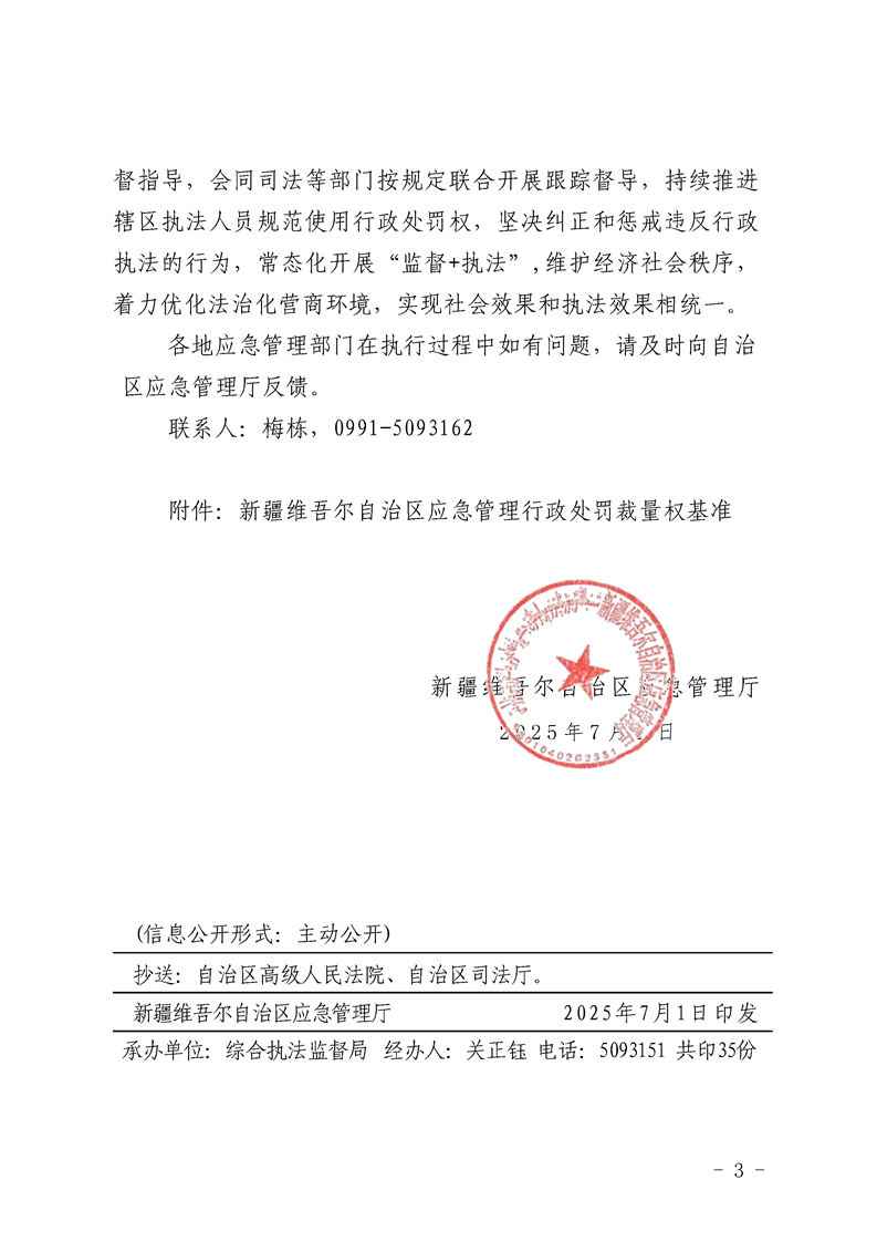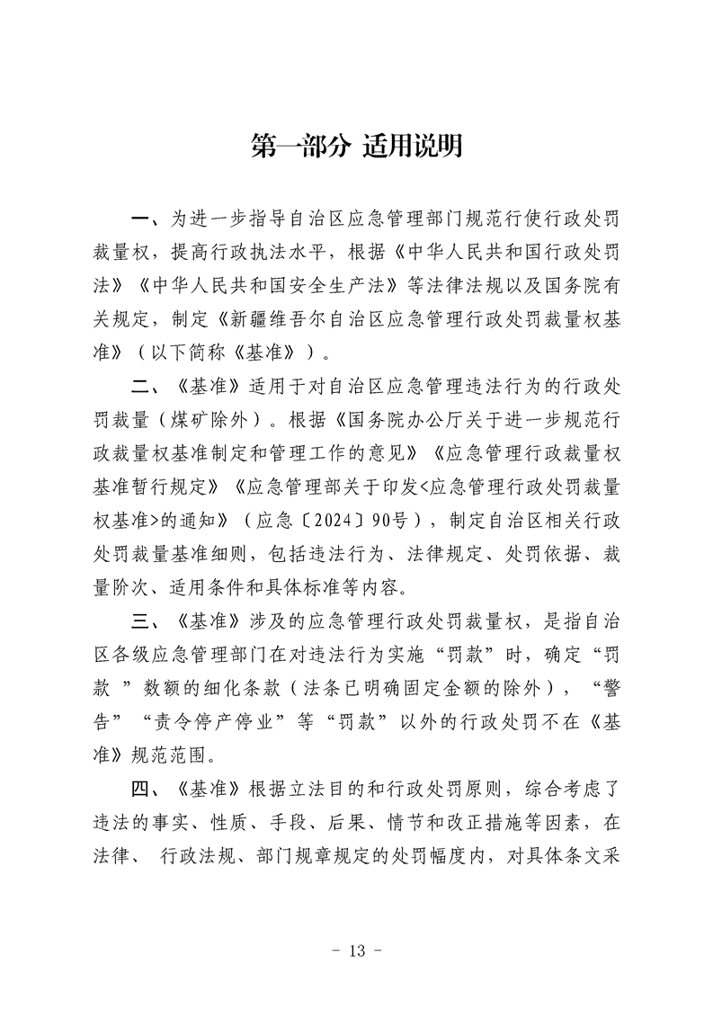 关于印发《新疆维吾尔自治区应急管理行政处罚裁量权基准》的通知